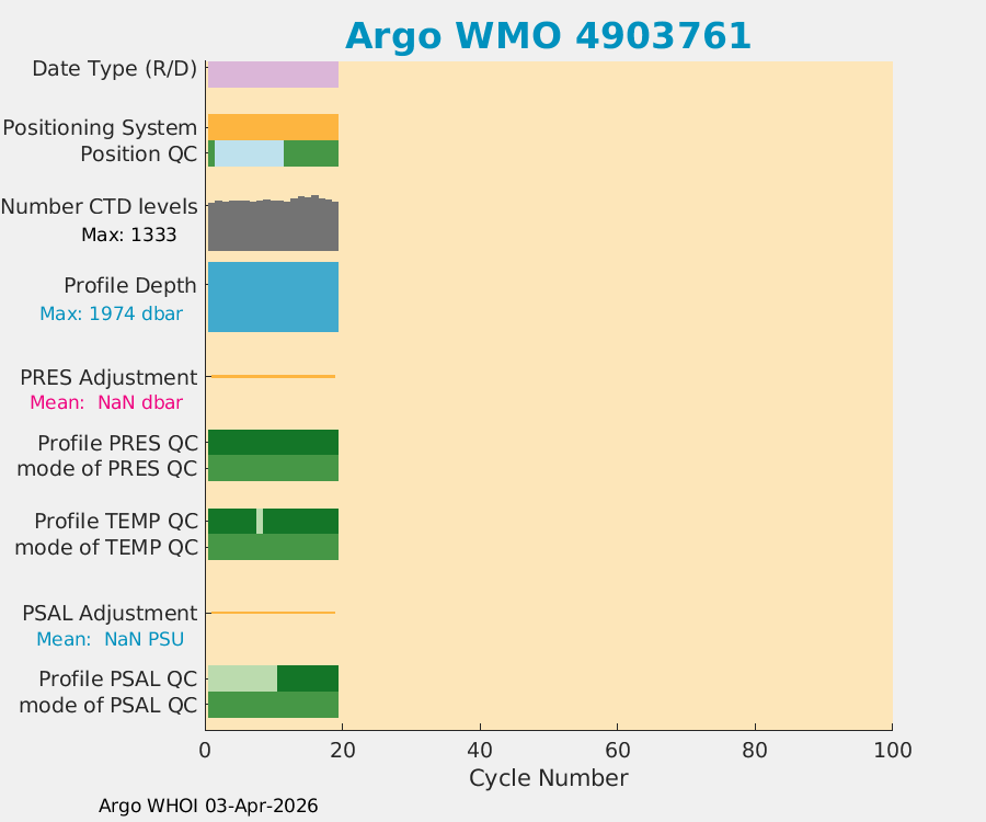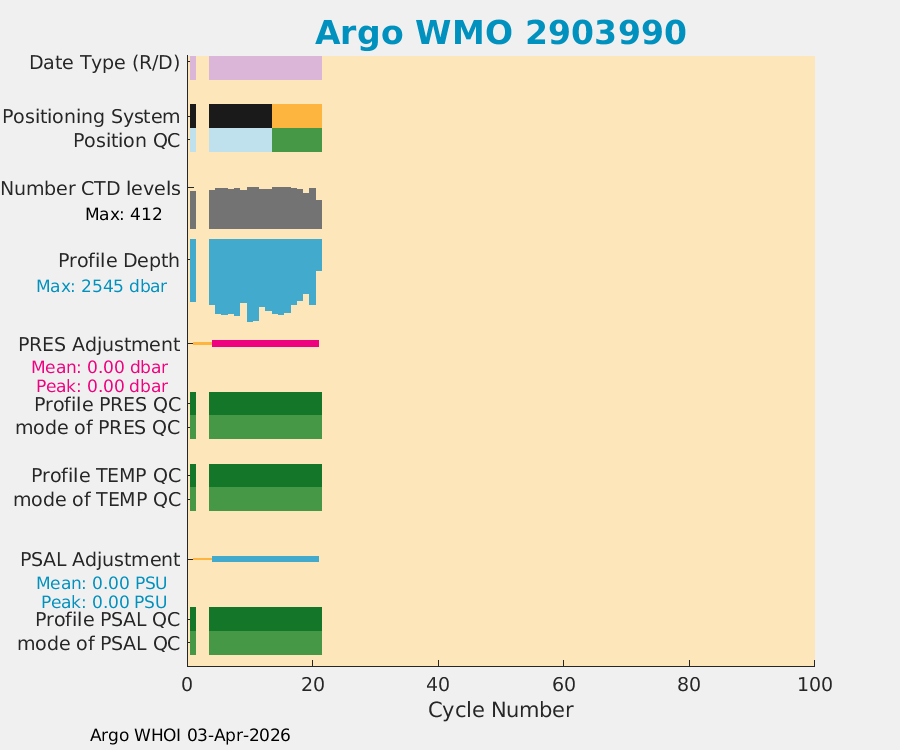 | WMO: #3902694 DAC: coriolis PI: Colin STEDMON ARVOR: # FLOATCLOCK: # DRUCK_2900PSIA: #12654795 SBE41CP: #20690 Altimeter Comparison (IFREMER) EuroArgo Link | n/a | n/a | ![]() |