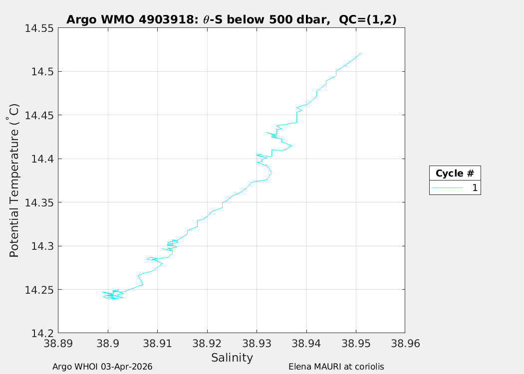 | WMO: #4903919 DAC: coriolis PI: Elena MAURI ARVOR: # DRUCK_2900PSIA: #12383592 SBE41CP: #19965 AANDERAA_OPTODE_4330: #4372 Altimeter Comparison (IFREMER) EuroArgo Link | ![]() |