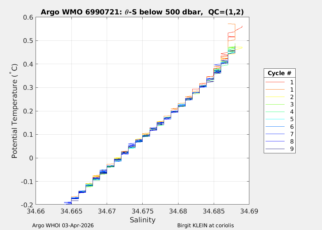 | WMO: #6990721 DAC: coriolis PI: Birgit KLEIN ARVOR: # FLOATCLOCK: # DRUCK_2900PSIA: #12700848 SBE41CP_V7.2.5: #21617 Altimeter Comparison (IFREMER) EuroArgo Link | ![]() |