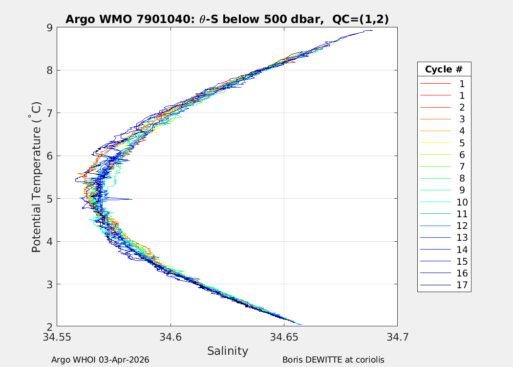 | WMO: #4903788 DAC: coriolis PI: Boris DEWITTE ARVOR: # DRUCK_2900PSIA: #12466748 SBE41CP: #20274 AANDERAA_OPTODE_4330: #4396 Altimeter Comparison (IFREMER) EuroArgo Link | ![]() |