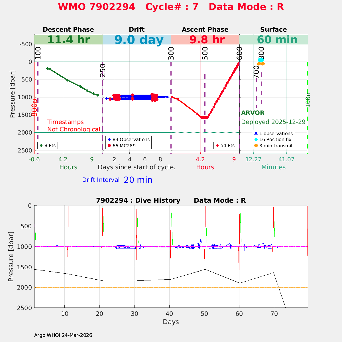 | WMO: #7902309 DAC: coriolis PI: Damien DESBRUYERES ARVOR_D: # KISTLER_10153PSIA: #5595215 SBE41CP: #13348 AANDERAA_OPTODE_4330: #3498 Altimeter Comparison (IFREMER) EuroArgo Link | ![]() |