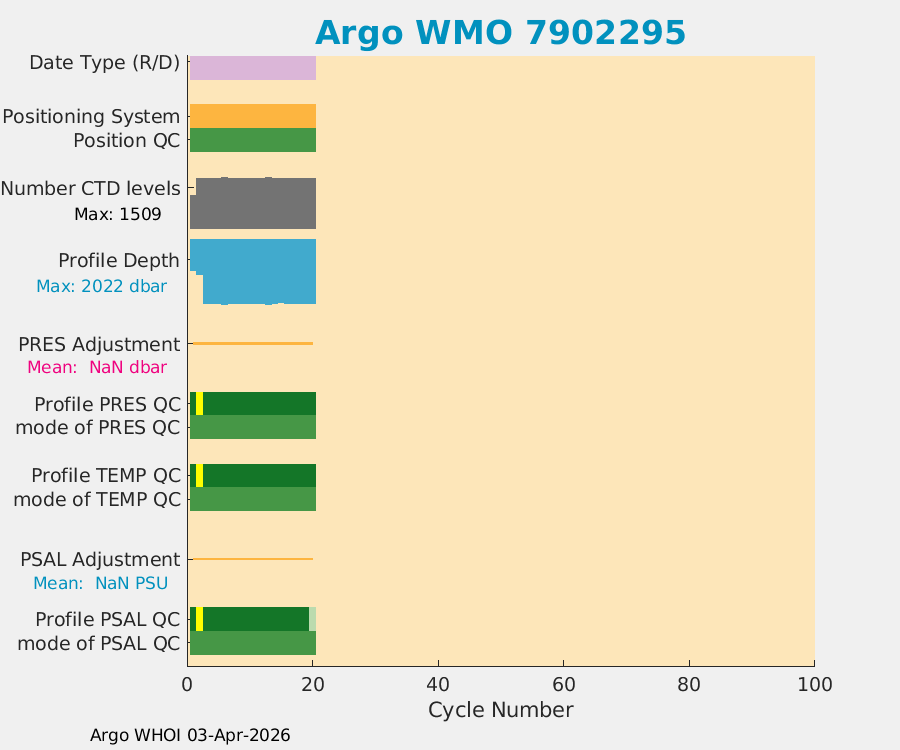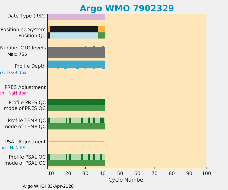 | WMO: #7902329 DAC: coriolis PI: Colin STEDMON ARVOR: # FLOATCLOCK: # DRUCK_2900PSIA: #12863626 SBE41CP: #20711 Altimeter Comparison (IFREMER) EuroArgo Link | n/a | n/a | ![]() |