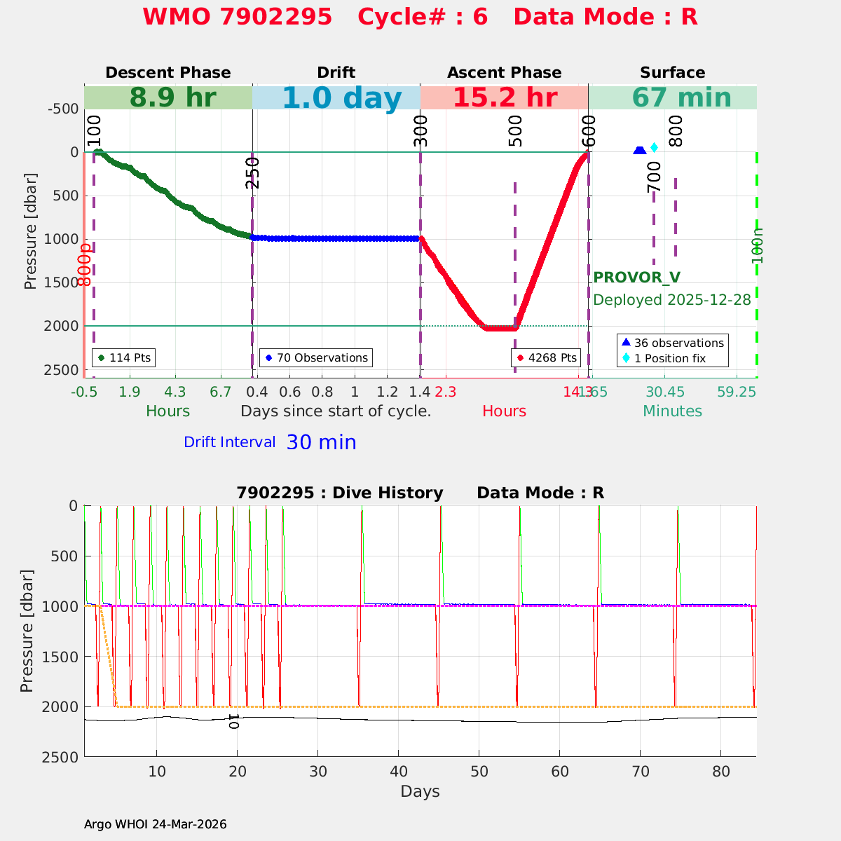 | WMO: #6990727 DAC: coriolis PI: Herve CLAUSTRE PROVOR_III: # DRUCK_2900PSIA: #10971289 SBE41CP: #11292 AANDERAA_OPTODE_4330: #2983 SATLANTIC_OCR504_ICSW: #42001 ECO_FLBBCD: #7931 ECO_FLBBCD: #5859 SEAFET: #12546 Altimeter Comparison (IFREMER) EuroArgo Link | ![]() |