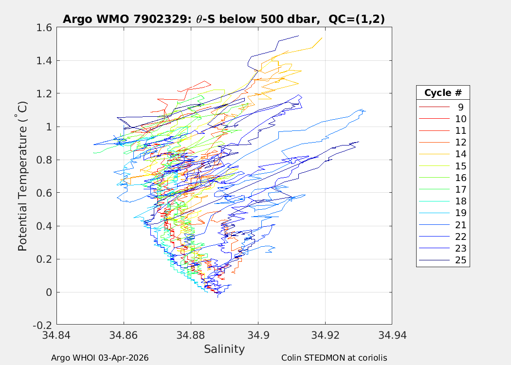 | WMO: #7902294 DAC: coriolis PI: Birgit KLEIN ARVOR: # FLOATCLOCK: # DRUCK_2900PSIA: #13236340 SBE41CP_V7.2.5: #21627 Altimeter Comparison (IFREMER) EuroArgo Link | ![]() |