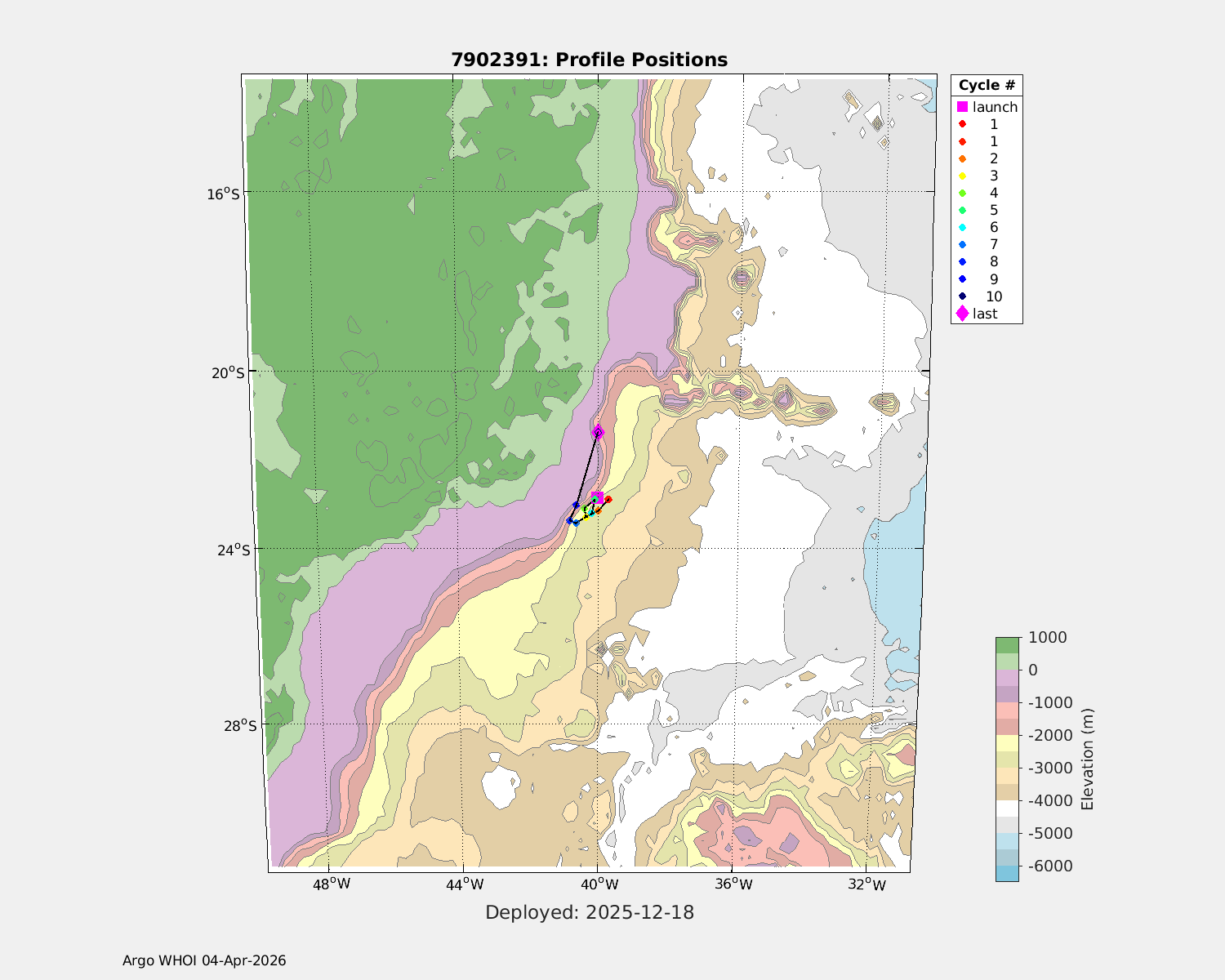 | WMO: #1902736 DAC: coriolis PI: Olaf BOEBEL APEX: #10049 FLOATCLOCK: # DRUCK_2900PSIA: #12192252 SBE41CP: #17874 Altimeter Comparison (IFREMER) EuroArgo Link | ![]() |