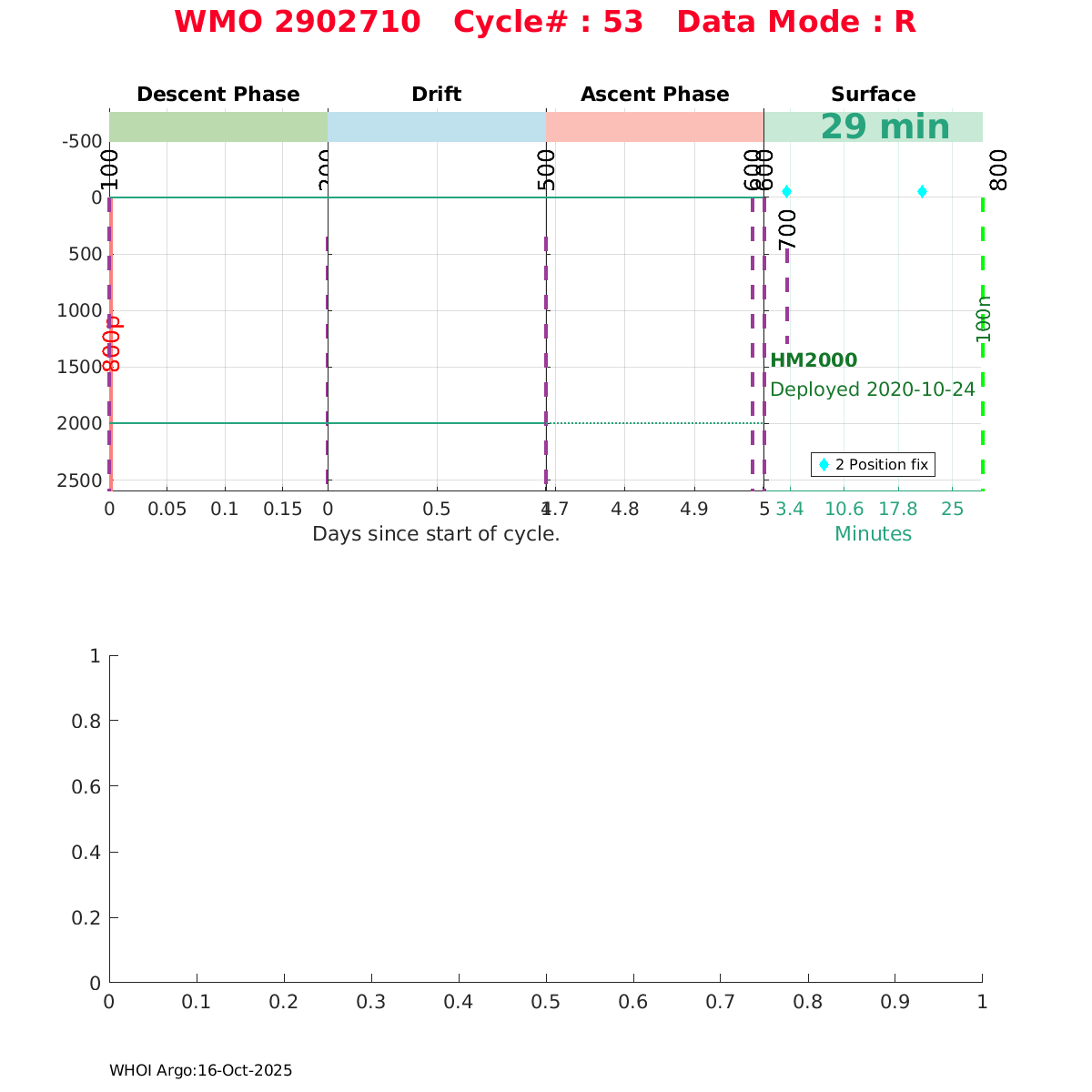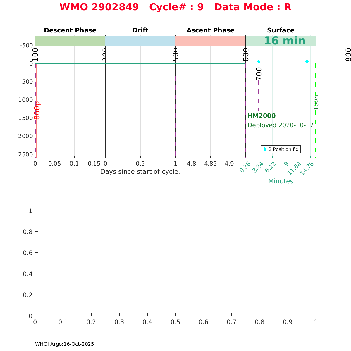 | WMO: #2902850 DAC: csio PI: LILI ZENG HM2000: # SBE41CP: #10327 DRUCK_2900PSIA: #N/A Altimeter Comparison (IFREMER) EuroArgo Link | ![]() |