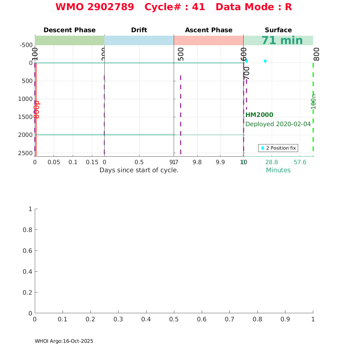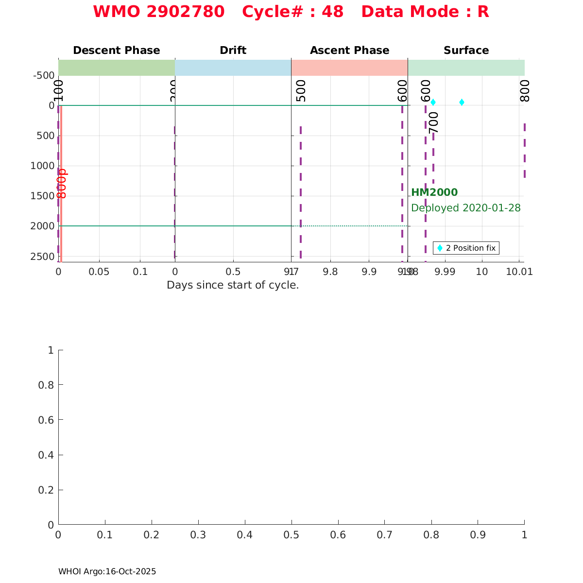 | WMO: #2902856 DAC: csio PI: LILI ZENG HM2000: # SBE41CP: #10390 DRUCK_2900PSIA: #10783096 Altimeter Comparison (IFREMER) EuroArgo Link | ![]() |
