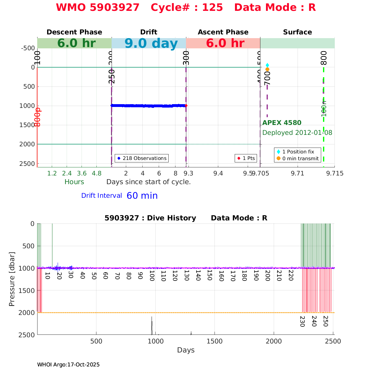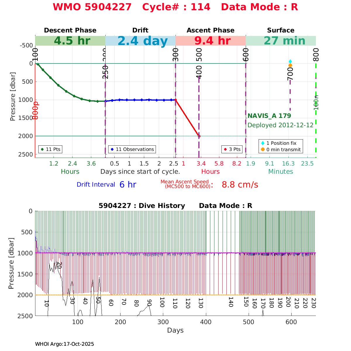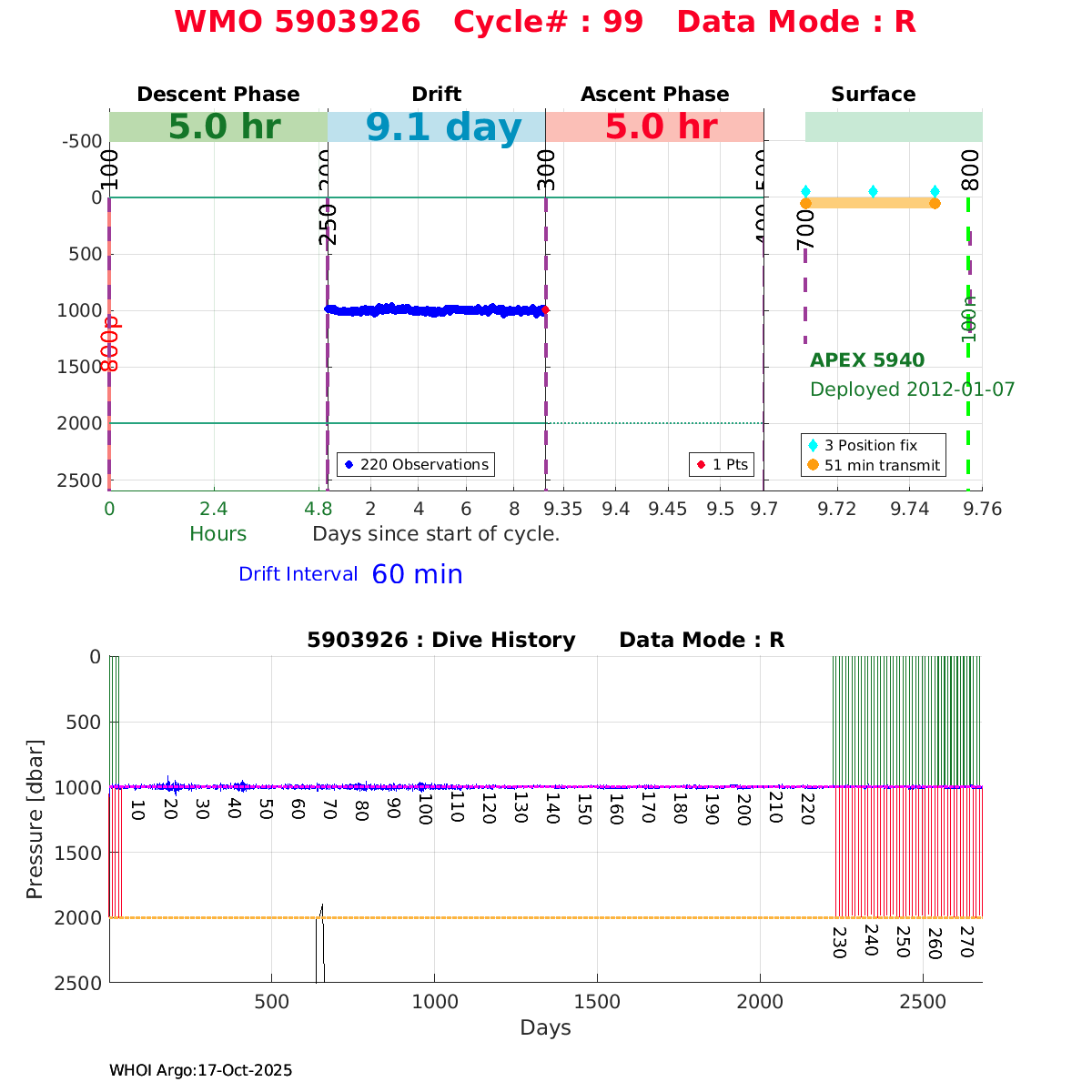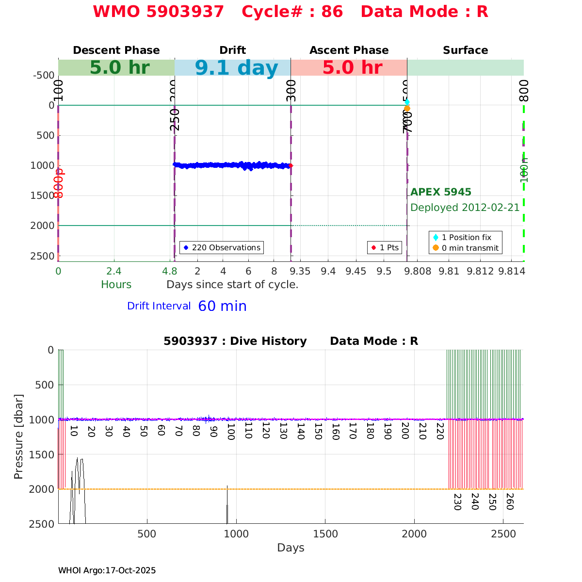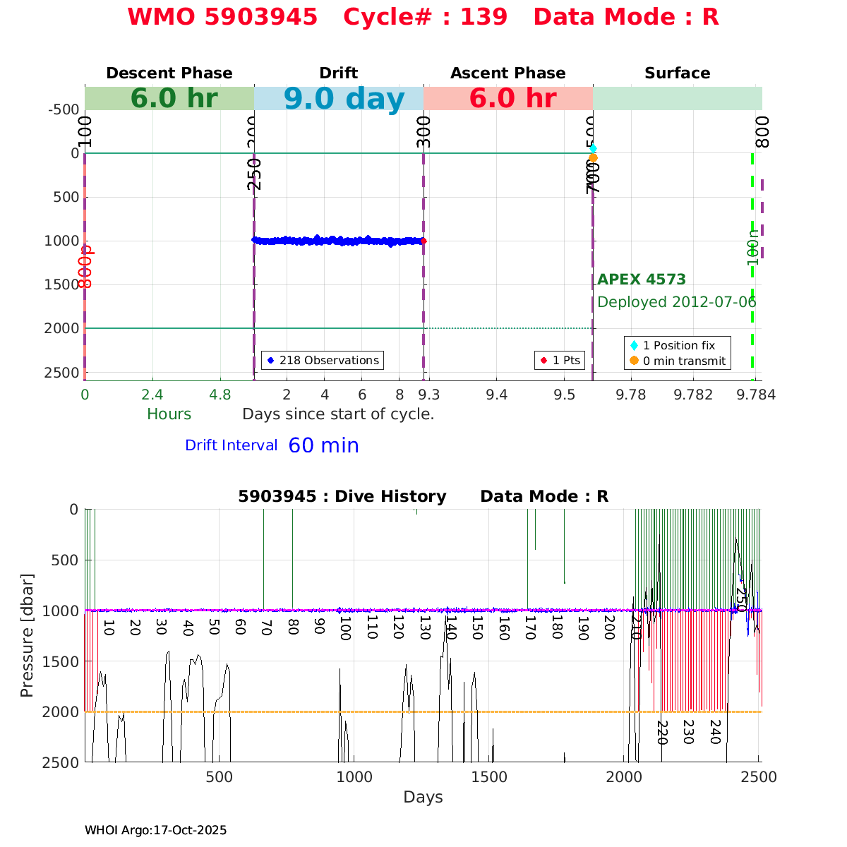 | WMO: #5903937 DAC: csiro PI: Susan Wijffels APEX: #5945 SBE41CP_V2: #3866 DRUCK: #3391506 Altimeter Comparison (IFREMER) EuroArgo Link | ![]() |