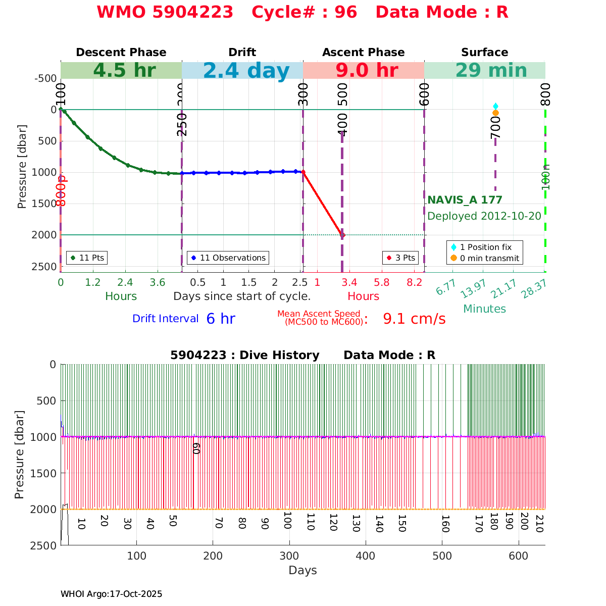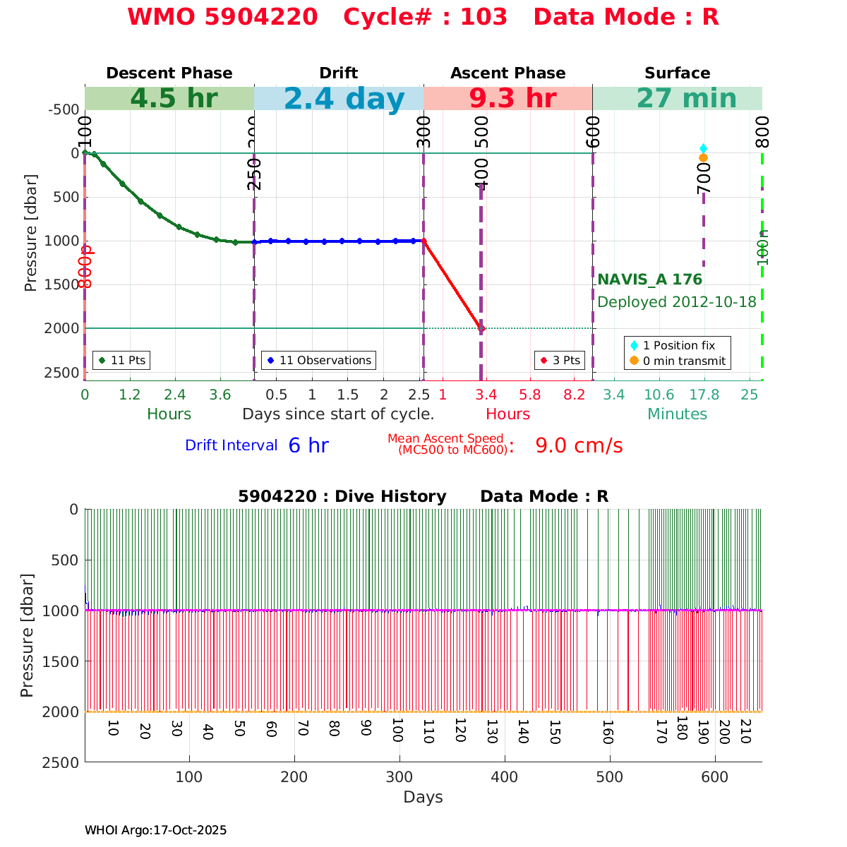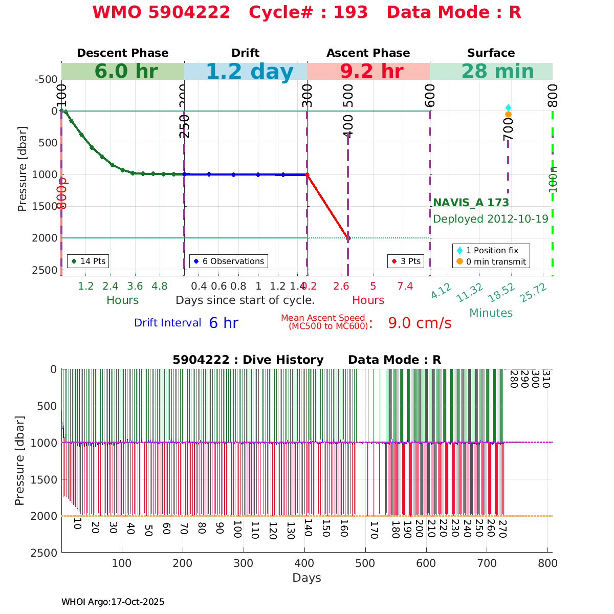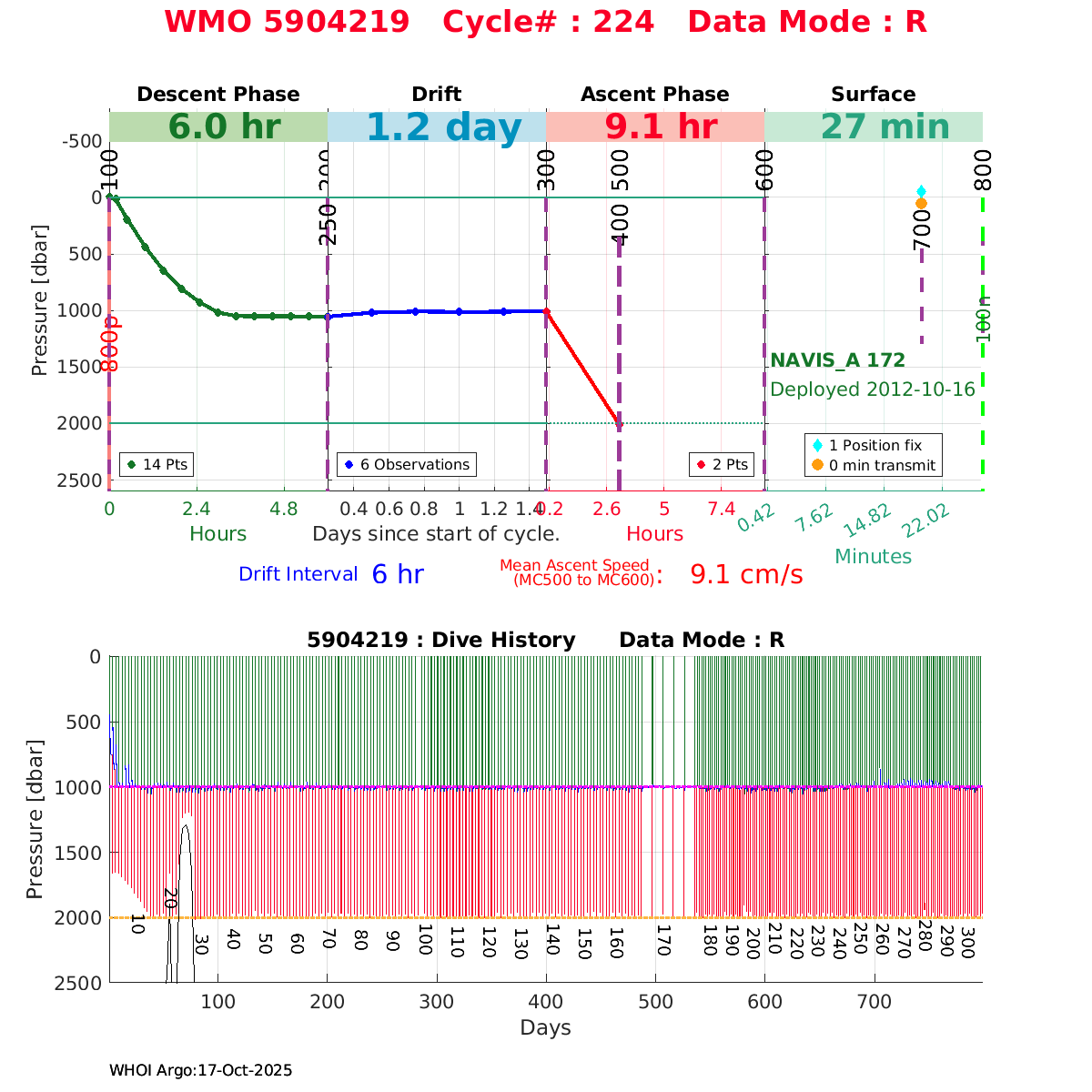| WMO: #5904219 DAC: csiro PI: Susan Wijffels NAVIS_A: #172 SBE41CP_V2: #4225 DRUCK: #3459118 Altimeter Comparison (IFREMER) EuroArgo Link | ![]() |