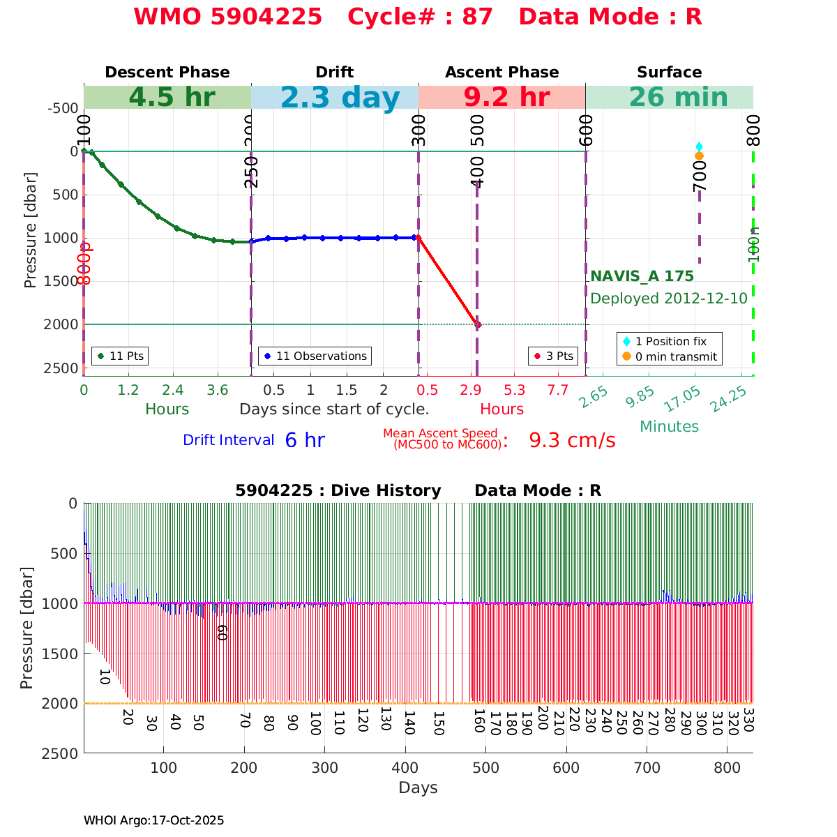 | WMO: #5903943 DAC: csiro PI: Susan Wijffels APEX: #5951 SBE41CP_V2: #3858 DRUCK: #3166866 Altimeter Comparison (IFREMER) EuroArgo Link | ![]() |