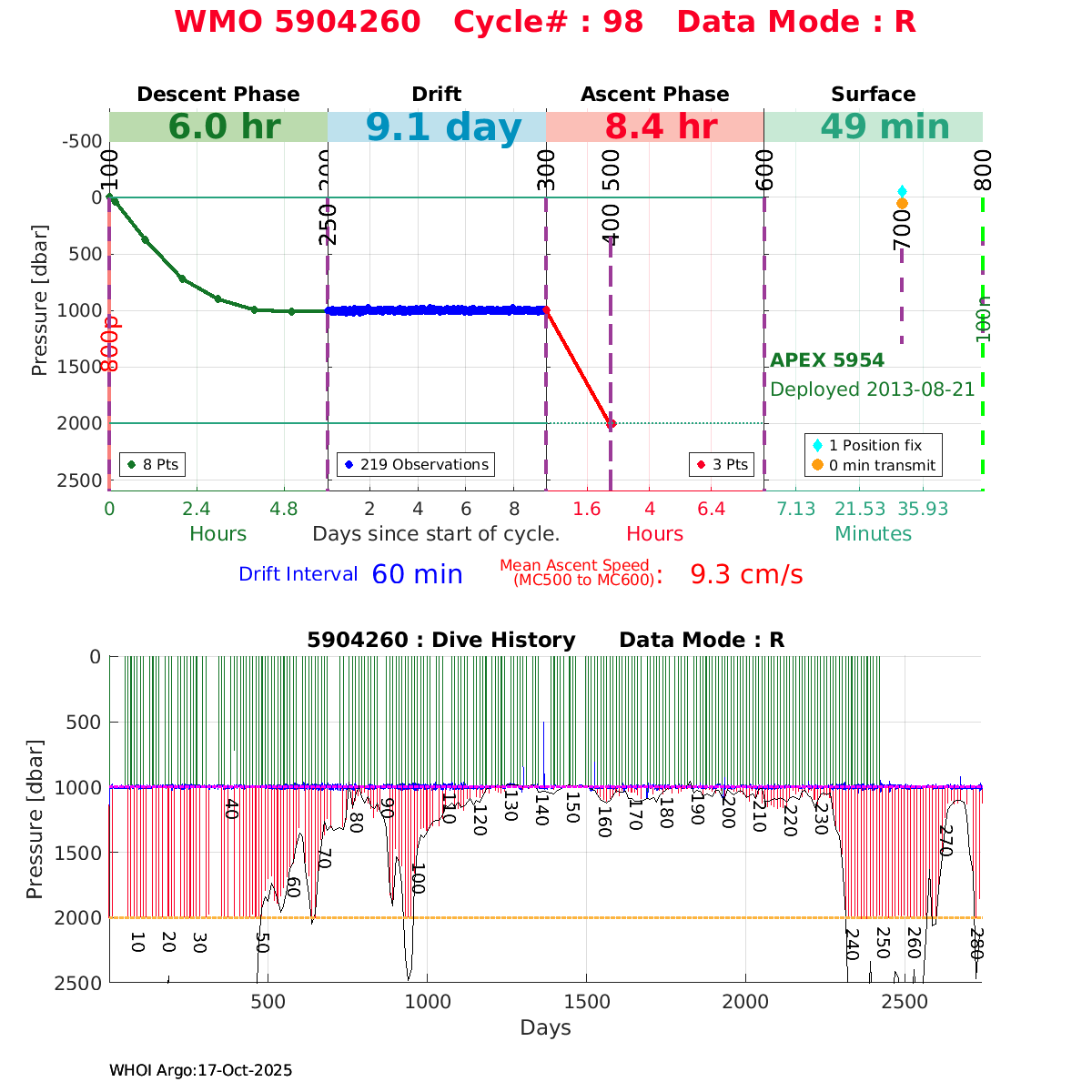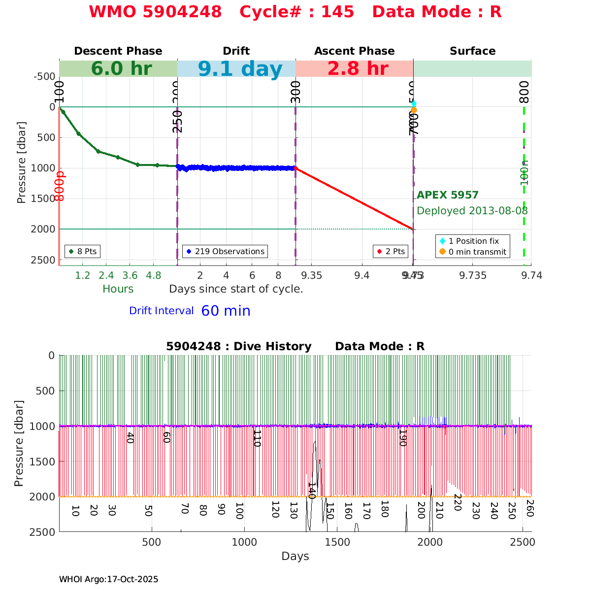 | WMO: #5904260 DAC: csiro PI: Susan Wijffels APEX: #5954 SBE41CP_V2: #3854 DRUCK: #3268973 Altimeter Comparison (IFREMER) EuroArgo Link | ![]() |