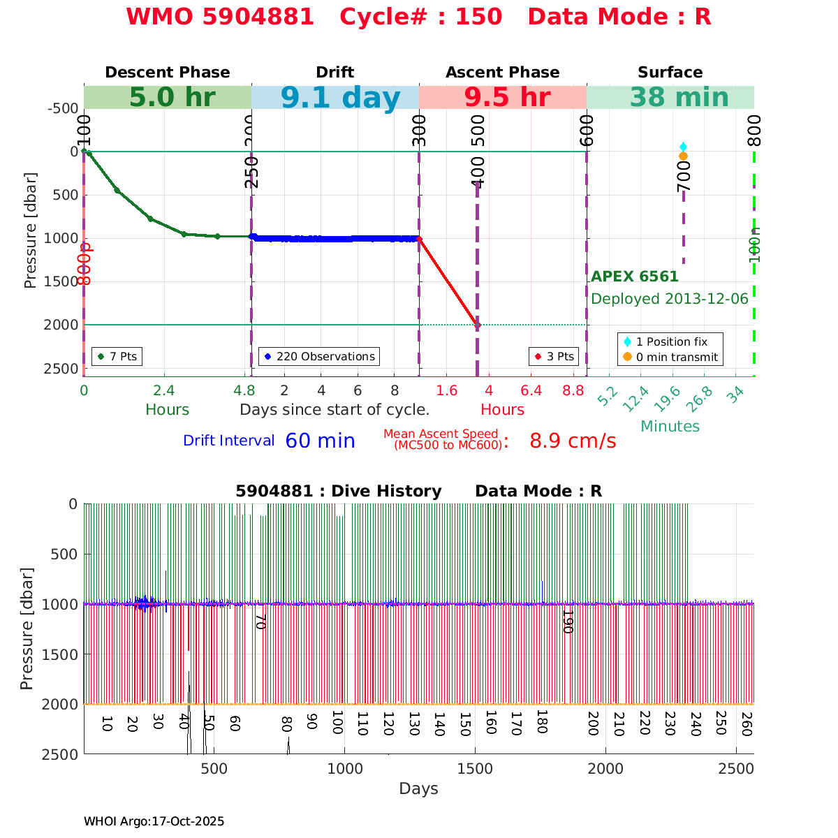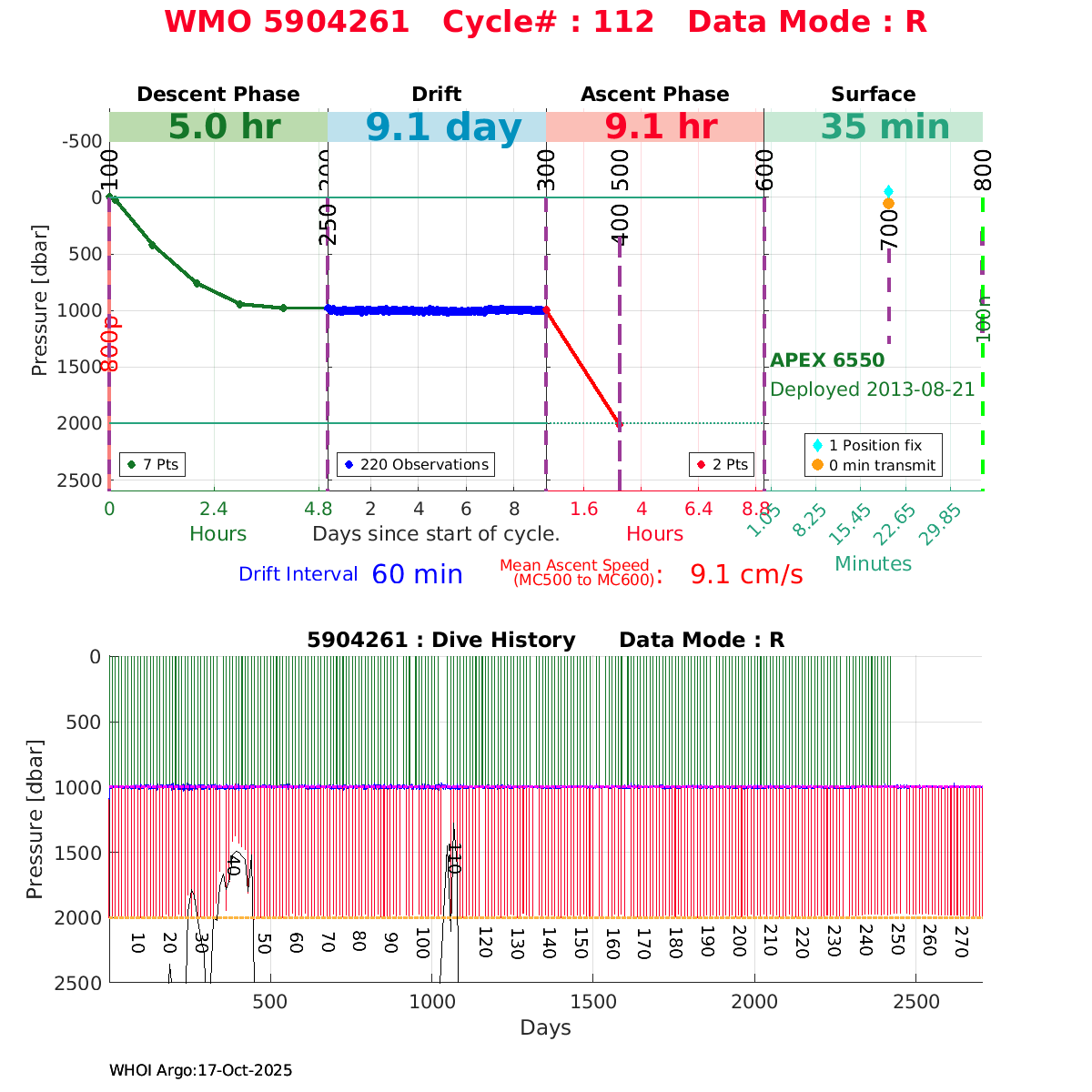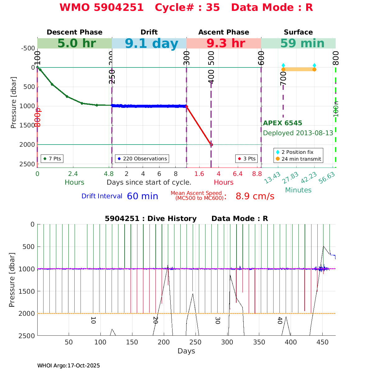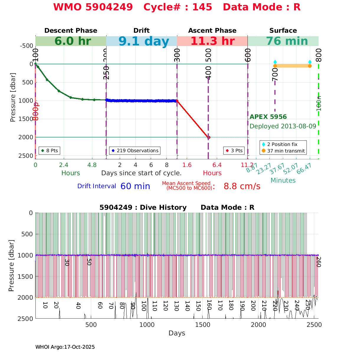 | WMO: #5904881 DAC: csiro PI: Susan Wijffels APEX: #6561 SBE41CP_V2: #4824 DRUCK: #3514791 Altimeter Comparison (IFREMER) EuroArgo Link | ![]() |