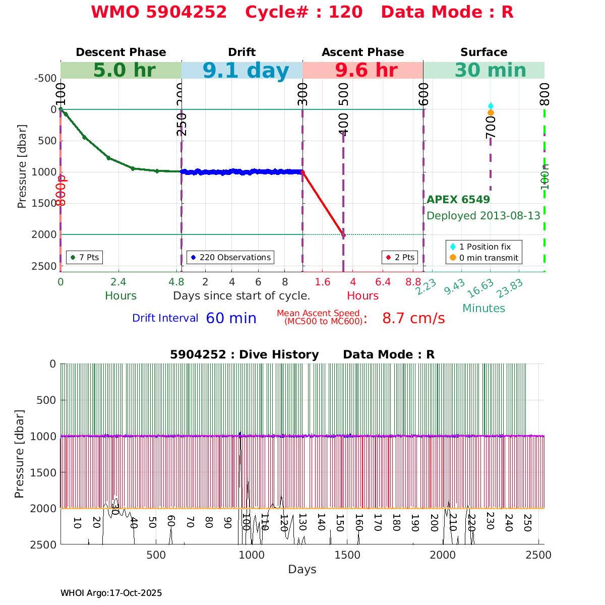| WMO: #1901337 DAC: csiro PI: Susan Wijffels APEX: #6630 SBE41CP_V2: #5085 DRUCK: #3537423 Altimeter Comparison (IFREMER) EuroArgo Link | ![]() |