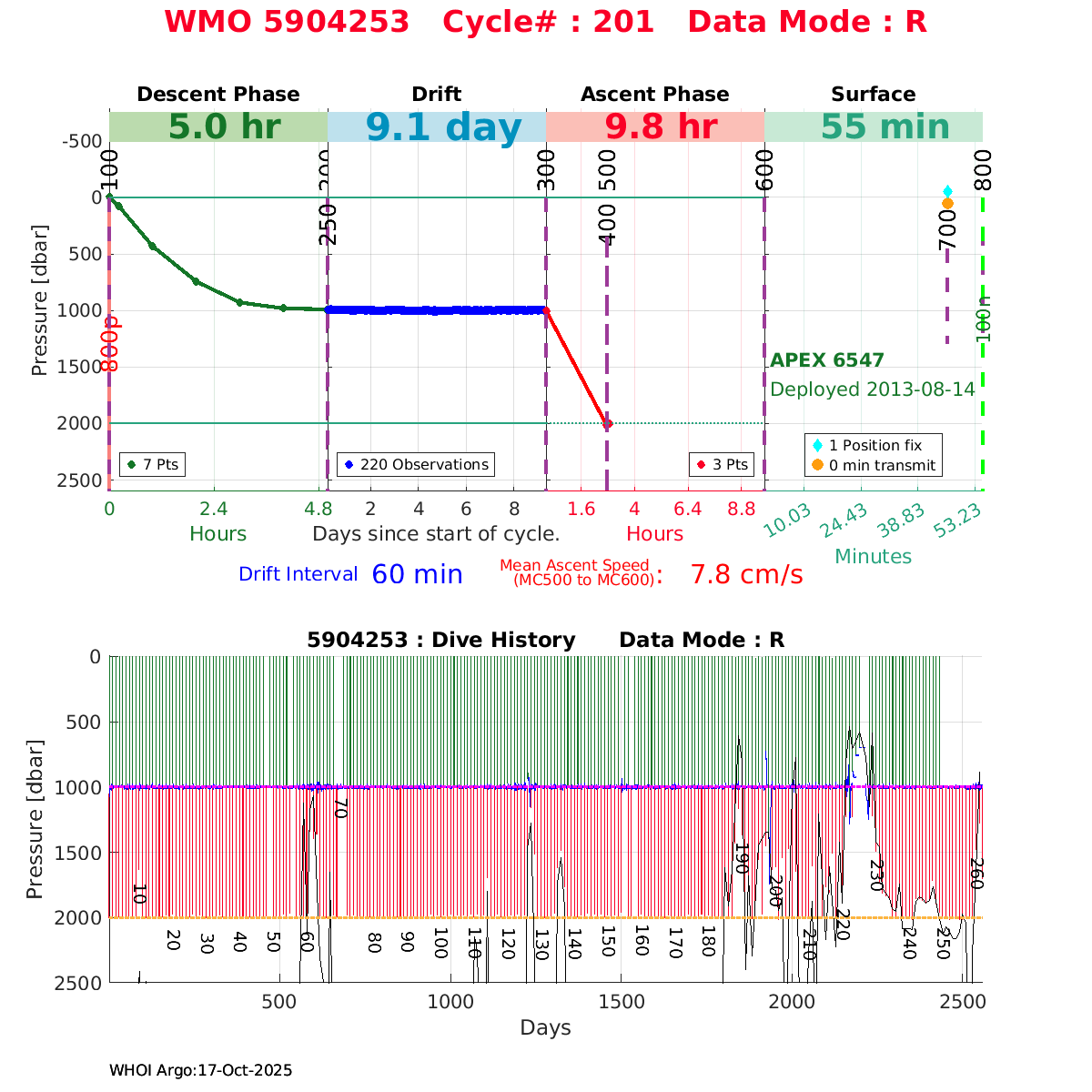 | WMO: #5904253 DAC: csiro PI: Susan Wijffels APEX: #6547 SBE41CP_V2: #4110 DRUCK: #3466538 Altimeter Comparison (IFREMER) EuroArgo Link | ![]() |