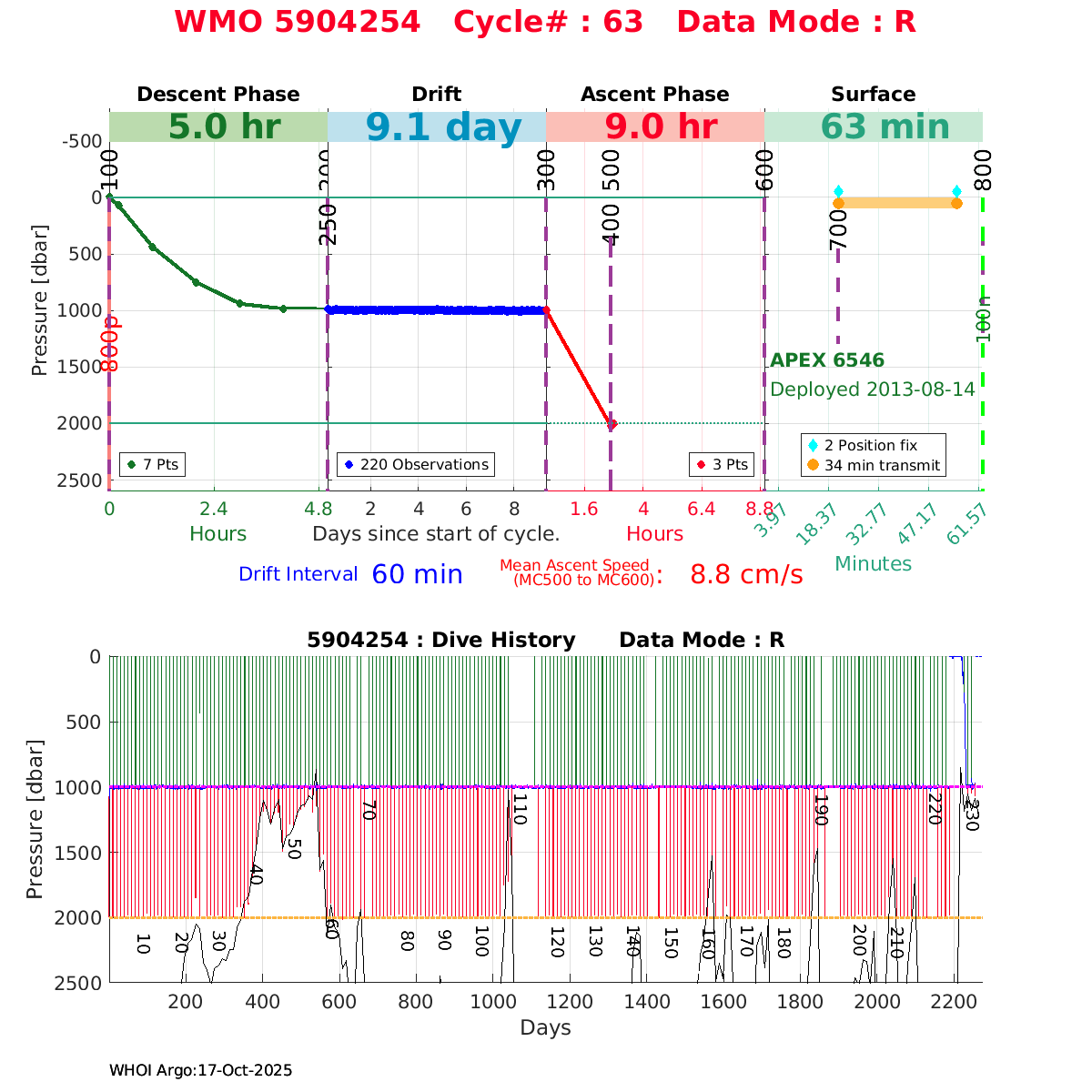 | WMO: #5904255 DAC: csiro PI: Susan Wijffels APEX: #6543 SBE41CP_V2: #4079 DRUCK: #3469200 Altimeter Comparison (IFREMER) EuroArgo Link | ![]() |