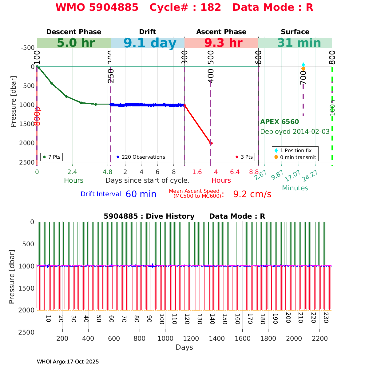 | WMO: #5904883 DAC: csiro PI: Susan Wijffels APEX: #6551 SBE41CP_V2: #4115 DRUCK: #3466536 Altimeter Comparison (IFREMER) EuroArgo Link | ![]() |
