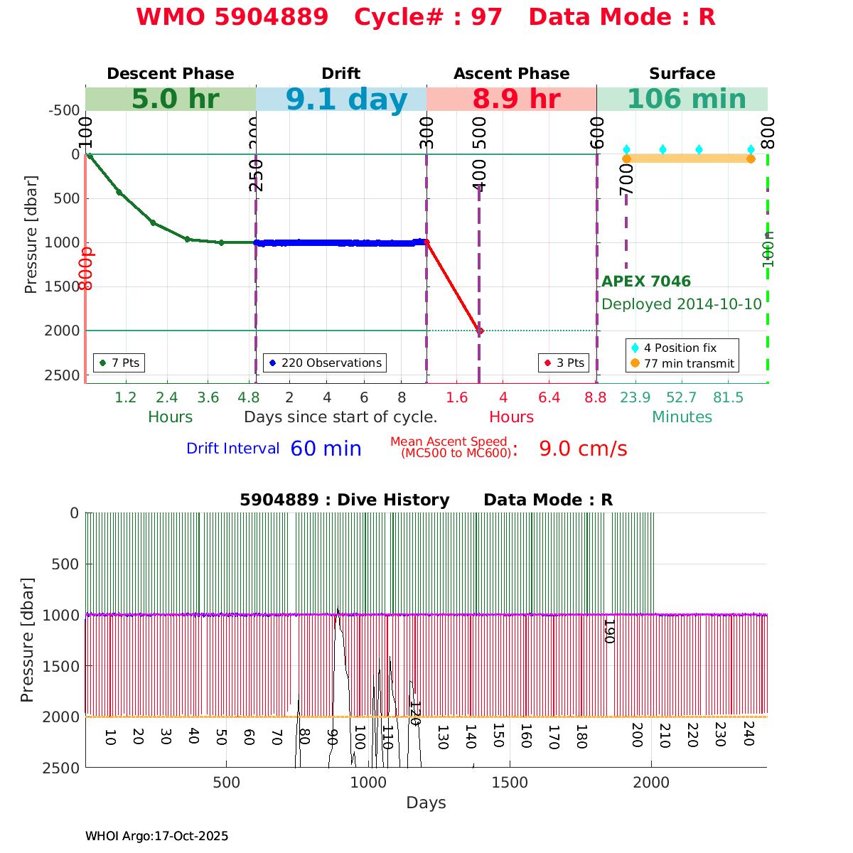 | WMO: #5904889 DAC: csiro PI: Susan Wijffels APEX: #7046 SBE41CP_V2: #5238 DRUCK: #3777130 Altimeter Comparison (IFREMER) EuroArgo Link | ![]() |