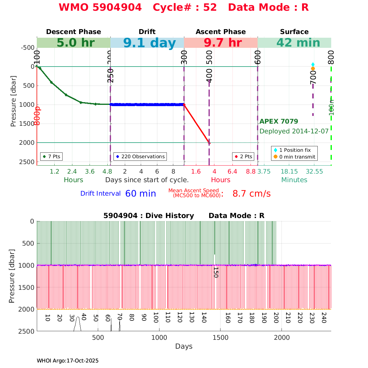 | WMO: #5904904 DAC: csiro PI: Susan Wijffels APEX: #7079 SBE41CP_V2: #6065 DRUCK: #3797216 Altimeter Comparison (IFREMER) EuroArgo Link | ![]() |