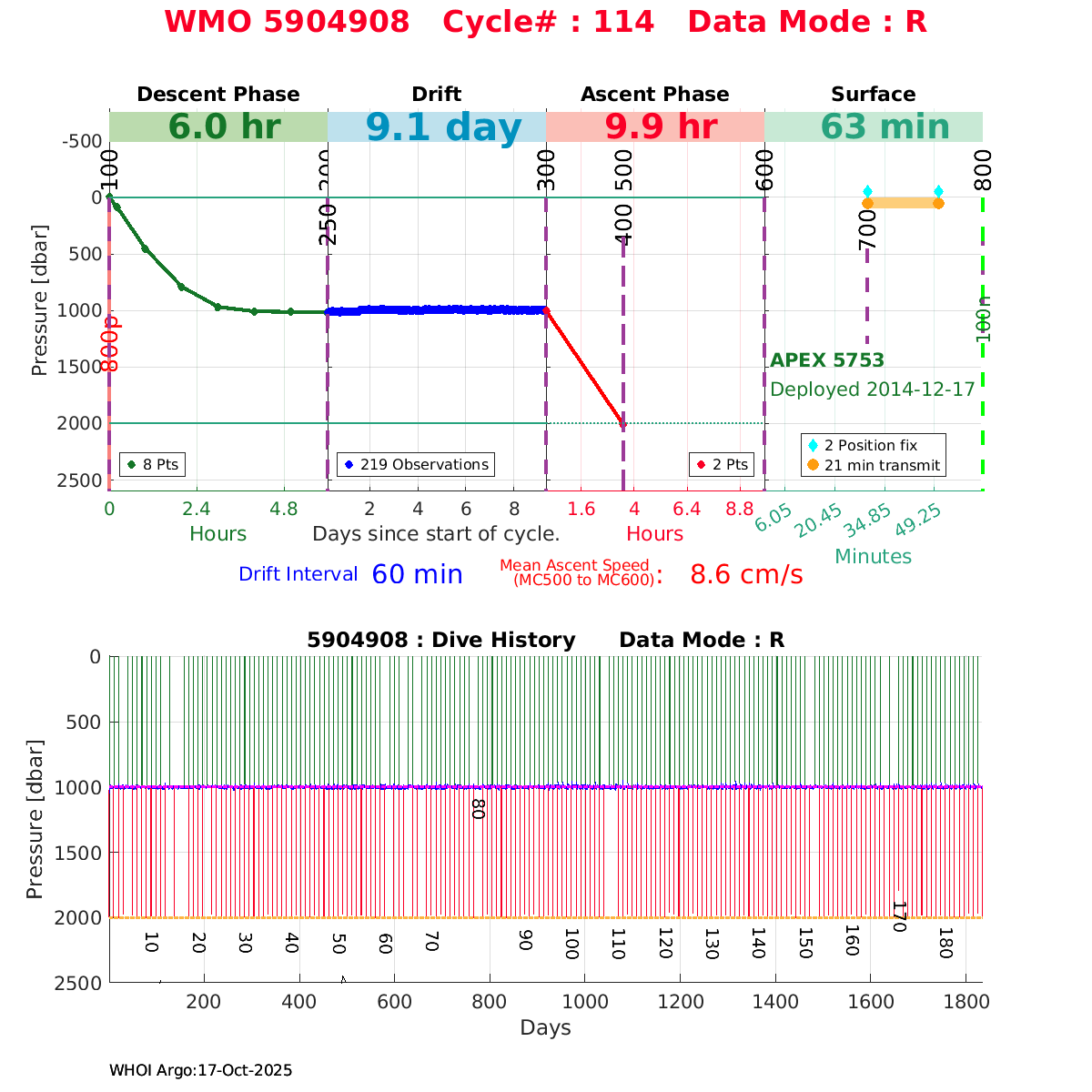 | WMO: #5904908 DAC: csiro PI: Susan Wijffels APEX: #5753 SBE41CP_V2: #3539 DRUCK: #3209095 Altimeter Comparison (IFREMER) EuroArgo Link | ![]() |