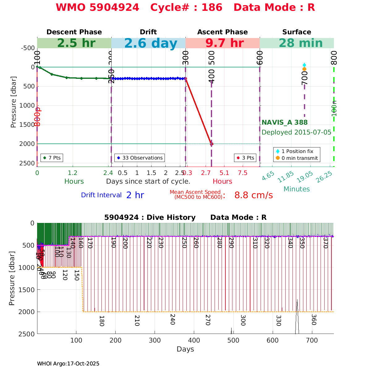 | WMO: #1901347 DAC: csiro PI: Nick Hardman-Mountford NAVIS_A: #390 SBE41CP_V4.4.0: #6002 DRUCK: #3890582 SBE63_OPTODE: #621 MCOMS_FLBB2: #26 SUNA_V2: #416 Altimeter Comparison (IFREMER) EuroArgo Link | ![]() |