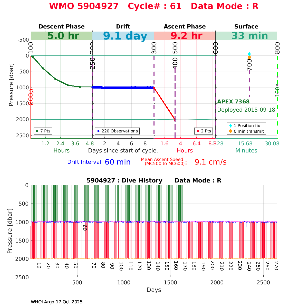 | WMO: #5904927 DAC: csiro PI: Susan Wijffels APEX: #7368 SBE41CP_V2: #6447 DRUCK: #4148151 Altimeter Comparison (IFREMER) EuroArgo Link | ![]() |