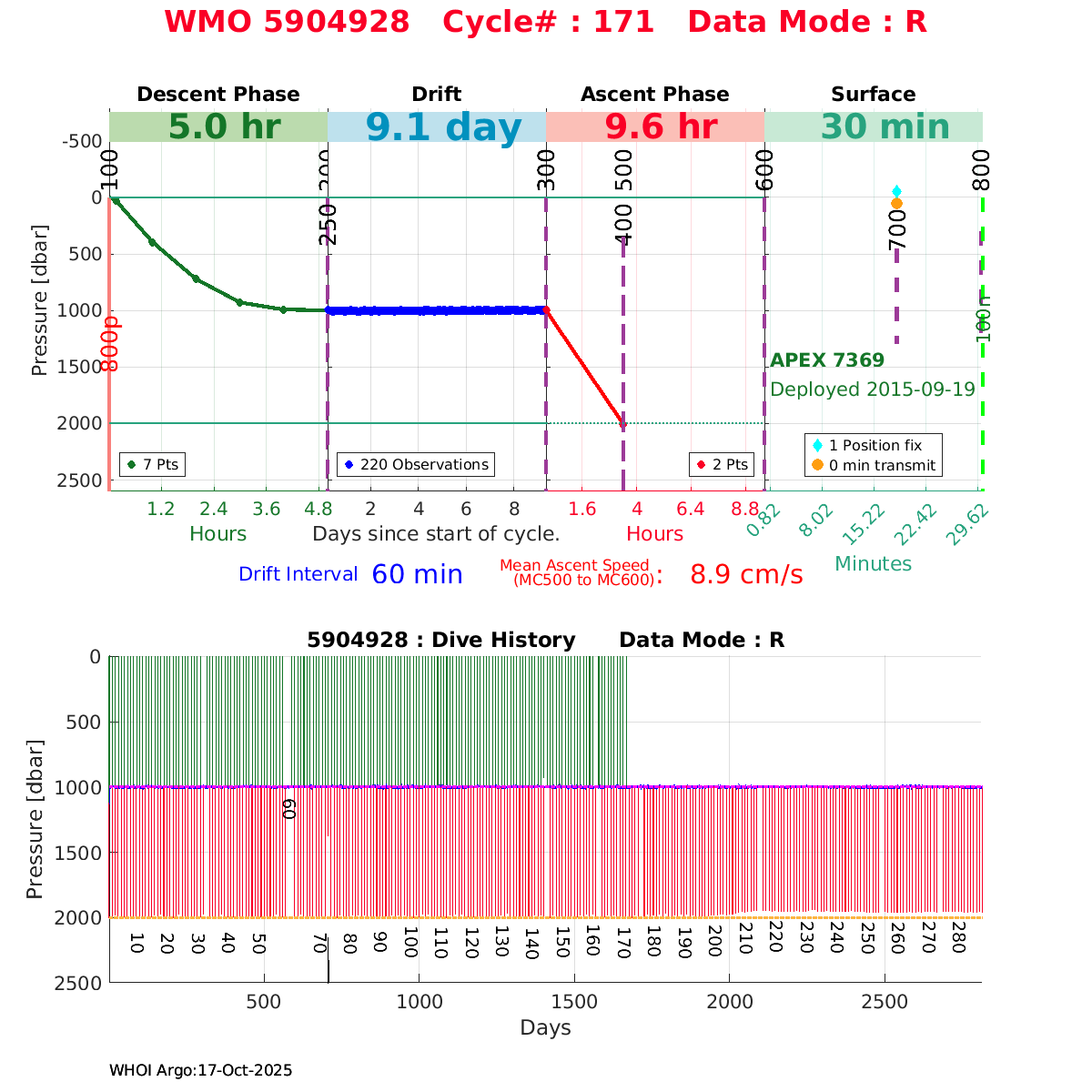 | WMO: #5904928 DAC: csiro PI: Susan Wijffels APEX: #7369 SBE41CP_V2: #6448 DRUCK: #4149497 Altimeter Comparison (IFREMER) EuroArgo Link | ![]() |