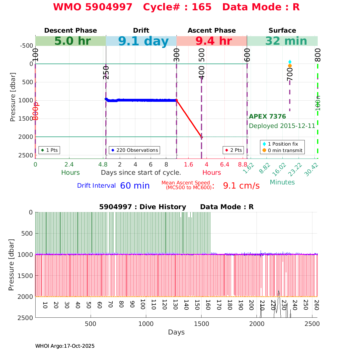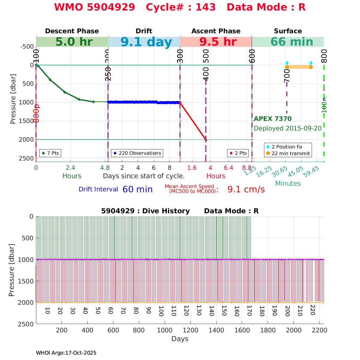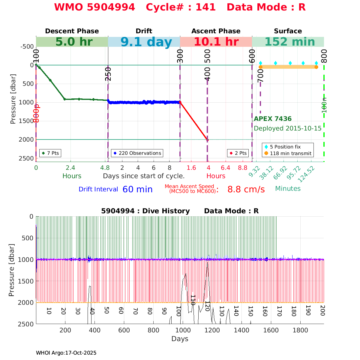 | WMO: #5904913 DAC: csiro PI: Susan Wijffels APEX: #7050 SBE41CP_V2: #5987 DRUCK: #3797207 Altimeter Comparison (IFREMER) EuroArgo Link | ![]() |