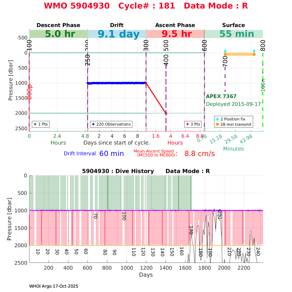 | WMO: #5904930 DAC: csiro PI: Susan Wijffels APEX: #7367 SBE41CP_V2: #6444 DRUCK: #4148161 Altimeter Comparison (IFREMER) EuroArgo Link | ![]() |