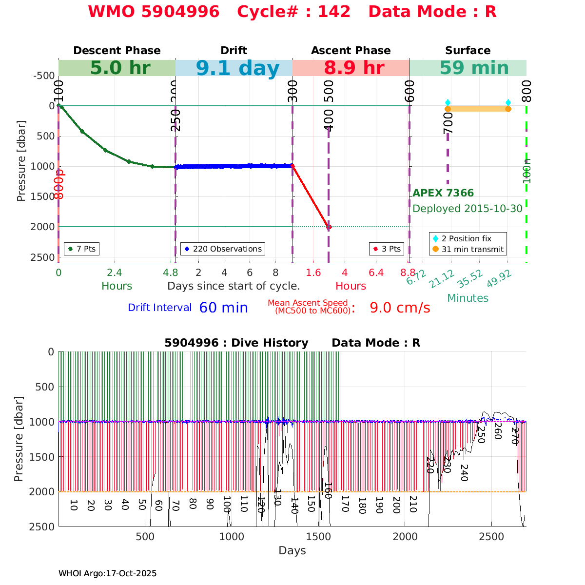 | WMO: #5904996 DAC: csiro PI: Susan Wijffels APEX: #7366 SBE41CP_V2: #6437 DRUCK: #4004729 Altimeter Comparison (IFREMER) EuroArgo Link | ![]() |