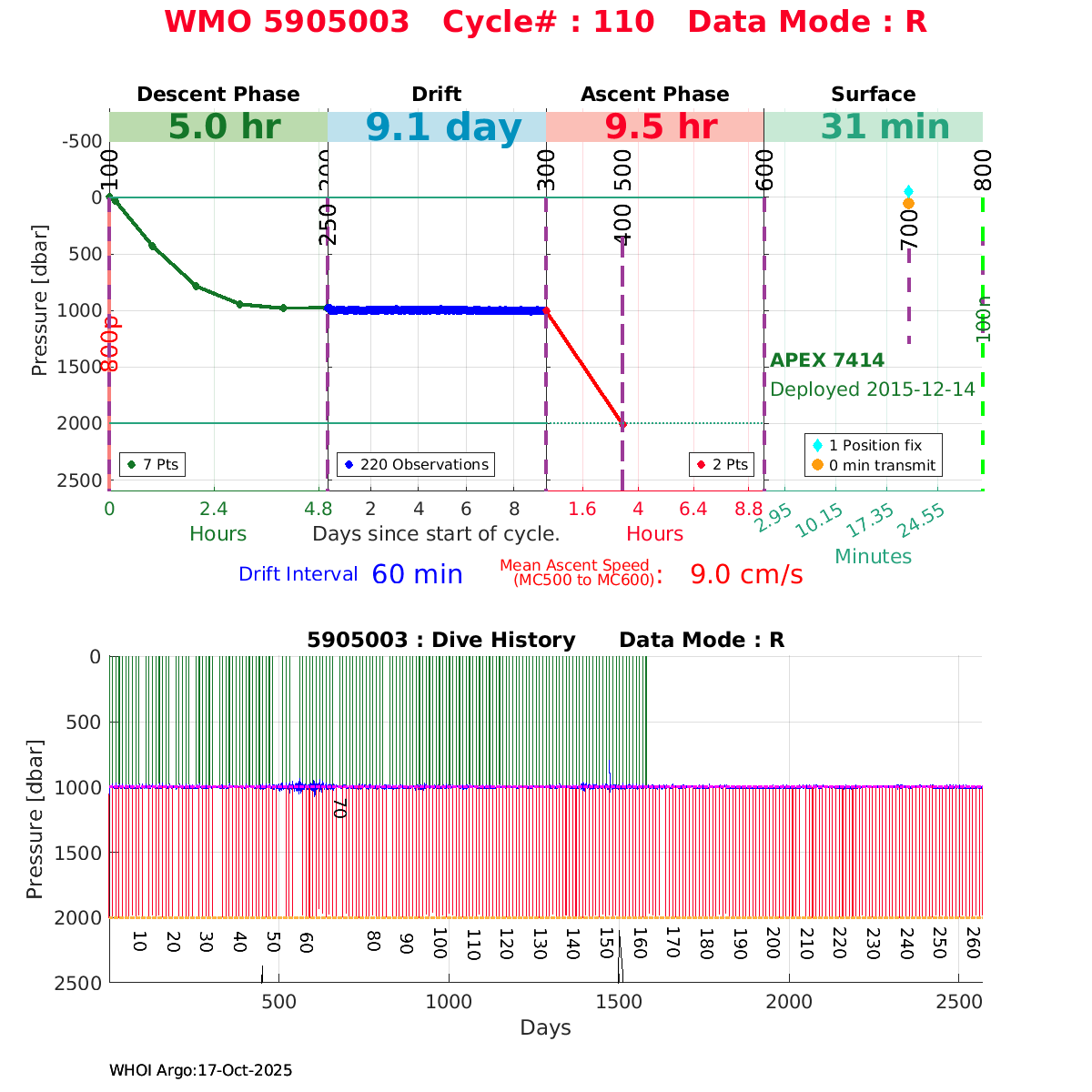 | WMO: #5905003 DAC: csiro PI: Susan Wijffels APEX: #7414 SBE41CP_V2: #7055 DRUCK: #4224962 Altimeter Comparison (IFREMER) EuroArgo Link | ![]() |