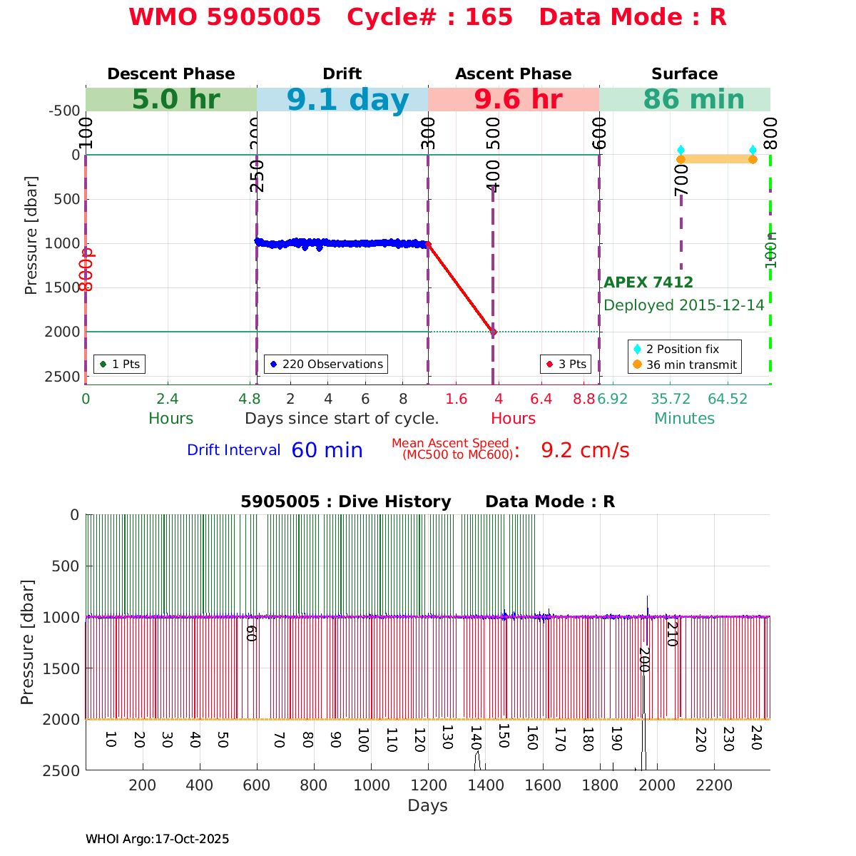 | WMO: #5905002 DAC: csiro PI: Susan Wijffels APEX: #7415 SBE41CP_V2: #7056 DRUCK: #4224964 Altimeter Comparison (IFREMER) EuroArgo Link | ![]() |
