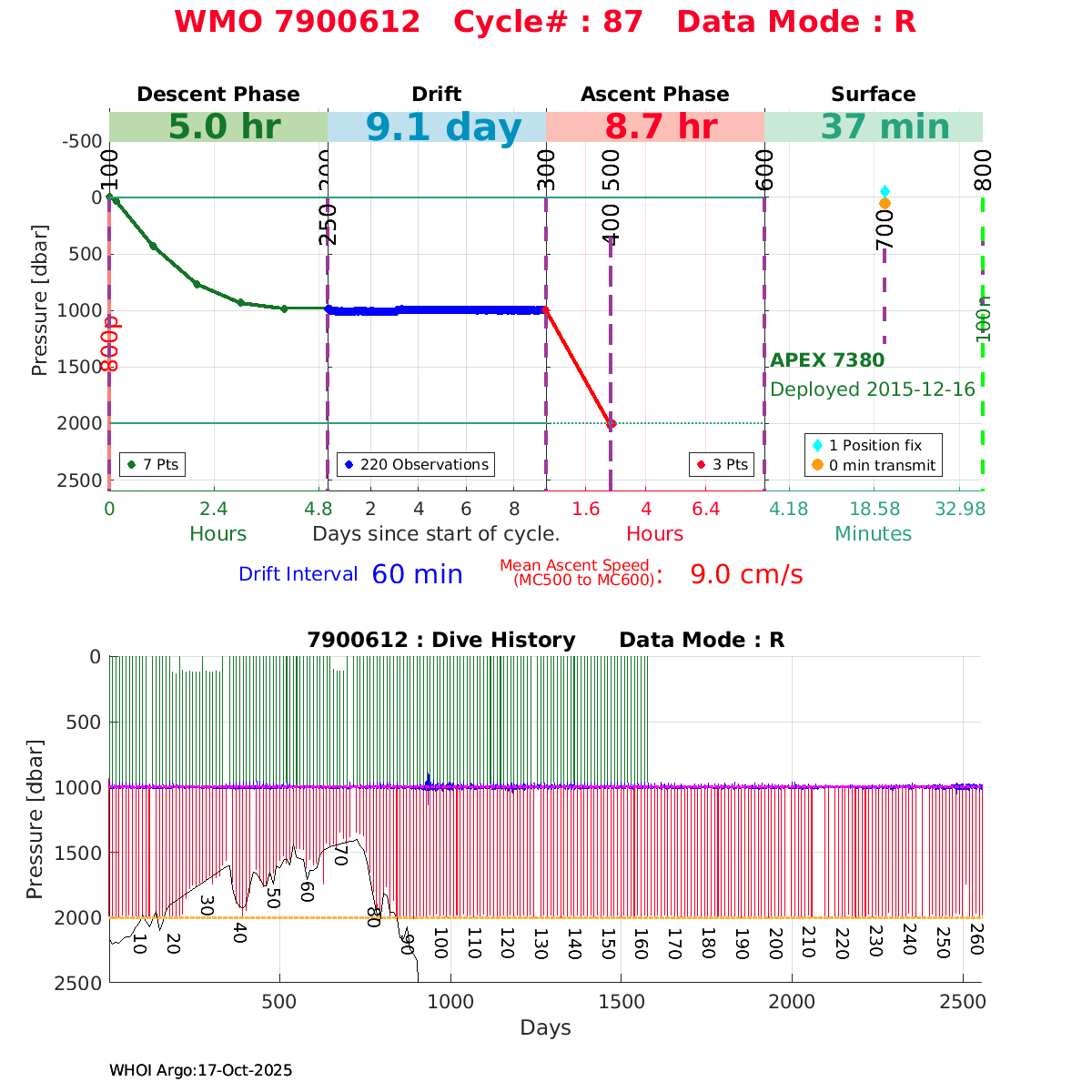 | WMO: #7900612 DAC: csiro PI: Susan Wijffels APEX: #7380 SBE41CP_V2: #7004 DRUCK: #4218745 Altimeter Comparison (IFREMER) EuroArgo Link | ![]() |
