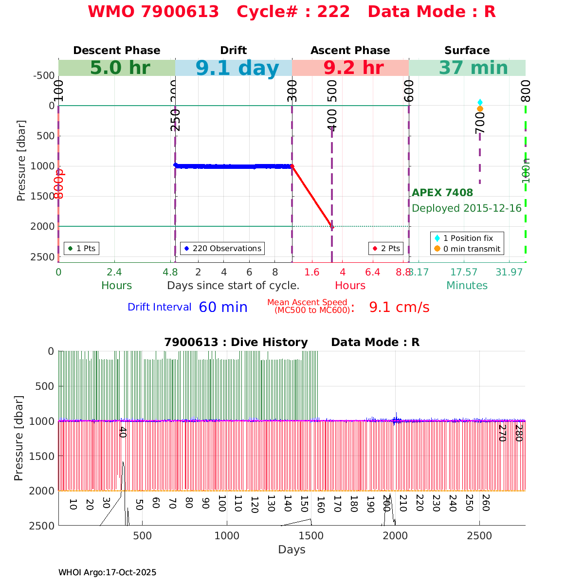 | WMO: #7900614 DAC: csiro PI: Susan Wijffels APEX: #7381 DRUCK: #4218741 SBE41CP_V2: #7005 Altimeter Comparison (IFREMER) EuroArgo Link | ![]() |