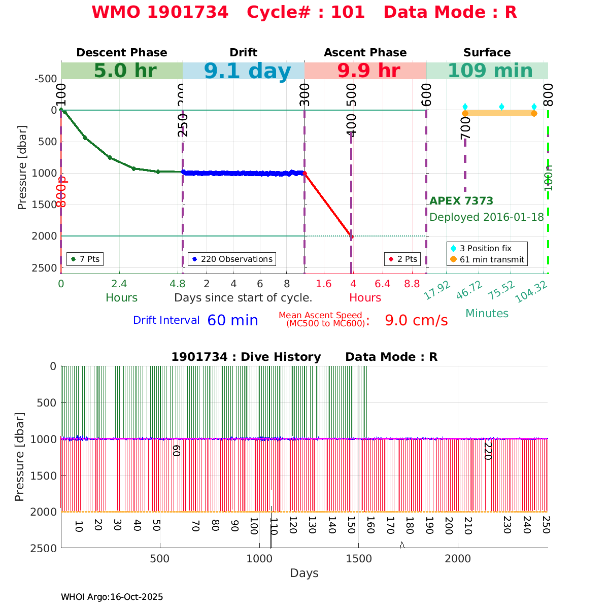| WMO: #1901734 DAC: csiro PI: Susan Wijffels APEX: #7373 SBE41CP_V2: #6454 DRUCK: #4112805 Altimeter Comparison (IFREMER) EuroArgo Link | ![]() |