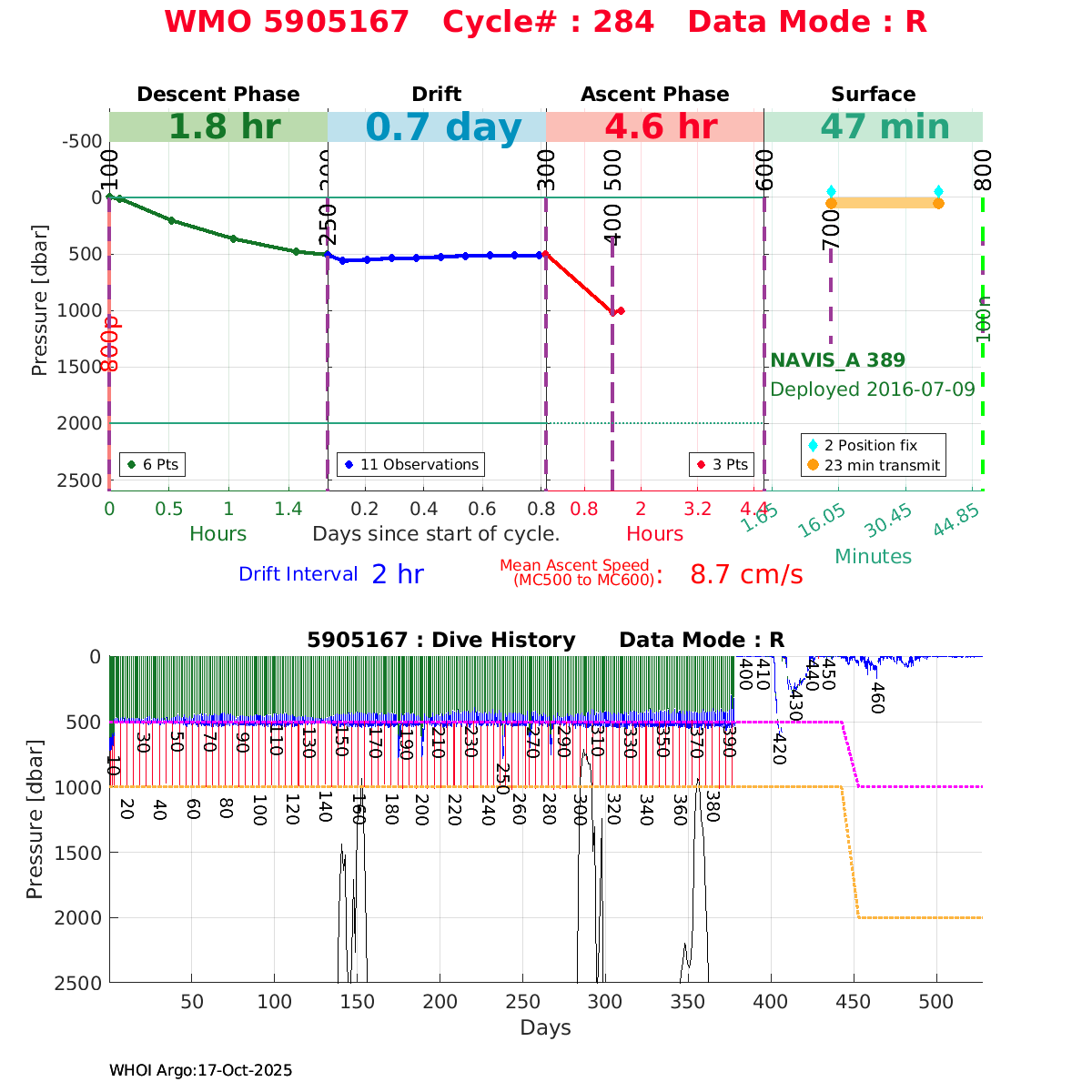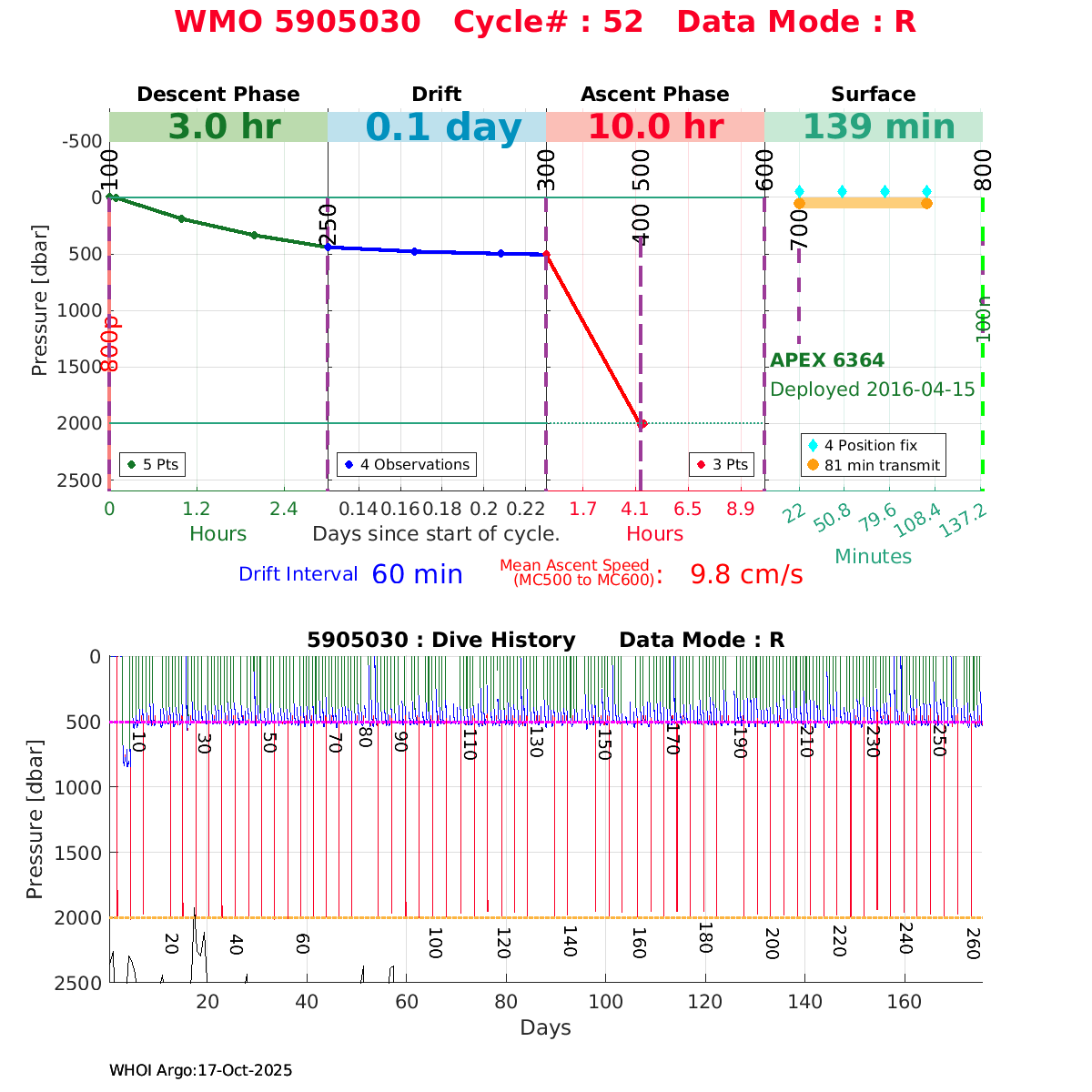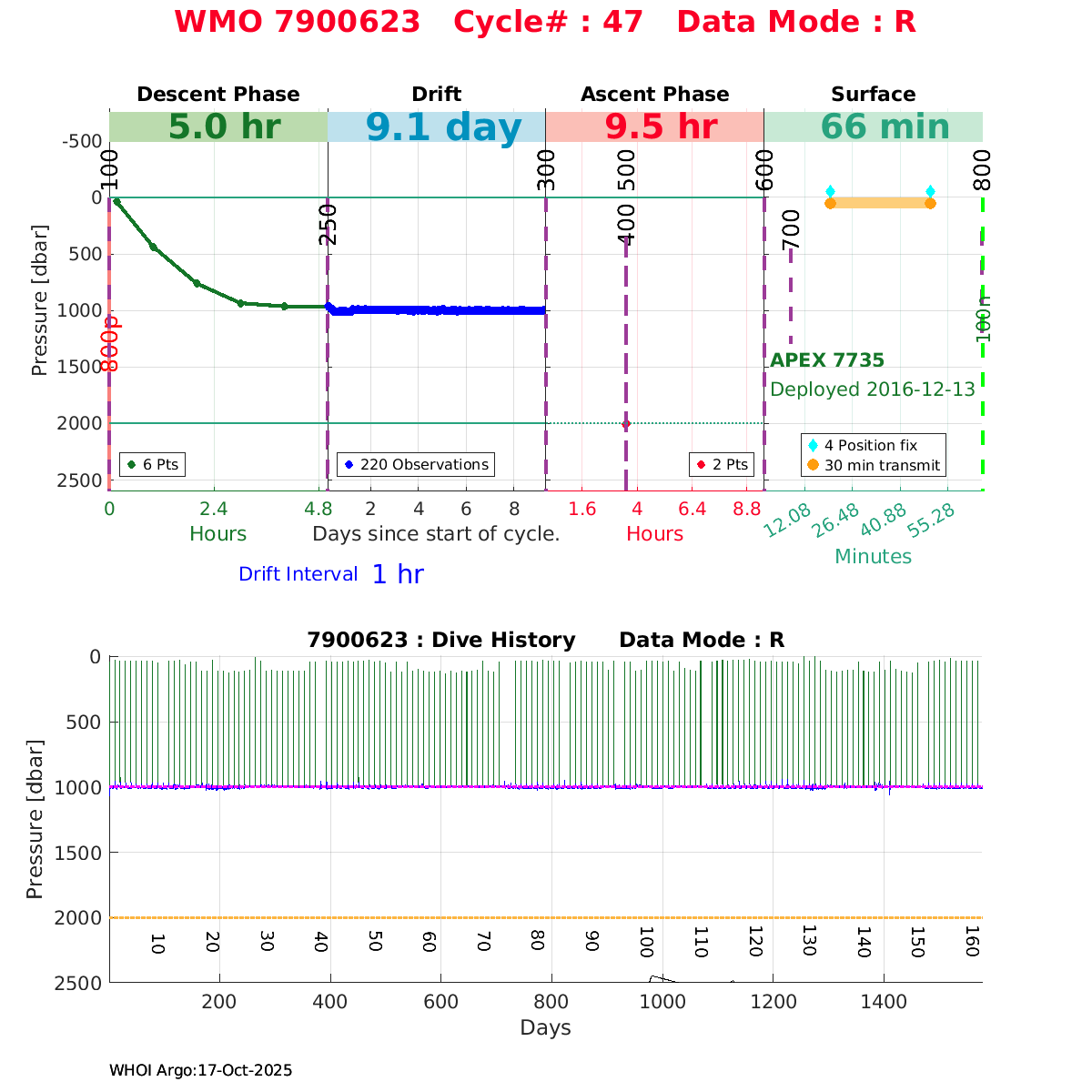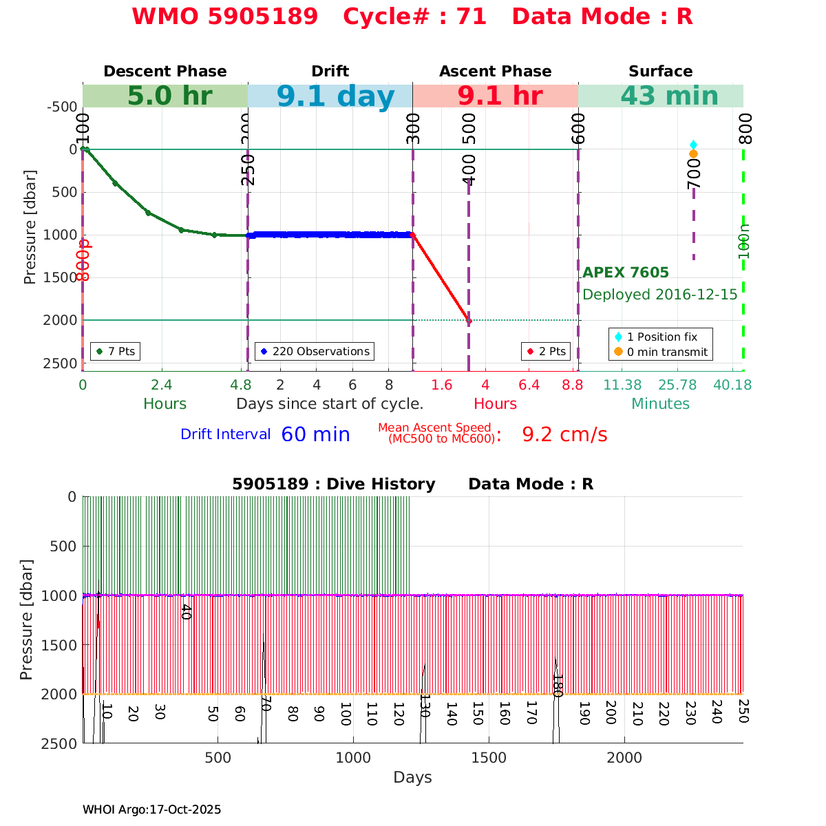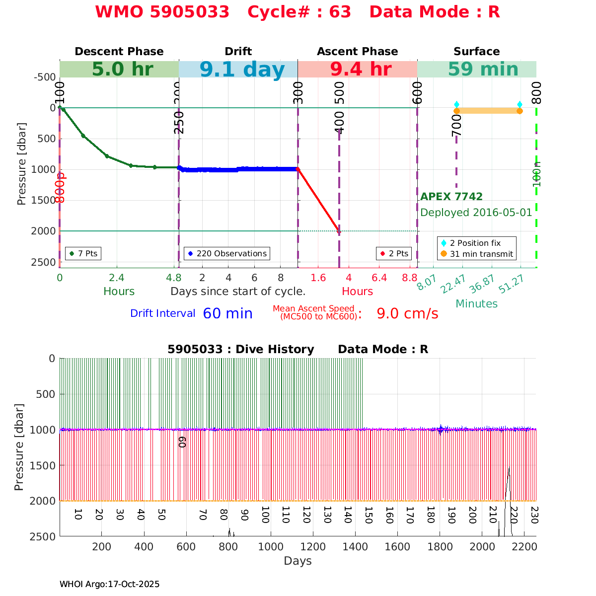 | WMO: #5905191 DAC: csiro PI: Susan Wijffels NAVIS_EBR: #763 SBE41CP_V7.2.5: #8633 DRUCK: #10300736 Altimeter Comparison (IFREMER) EuroArgo Link | ![]() |