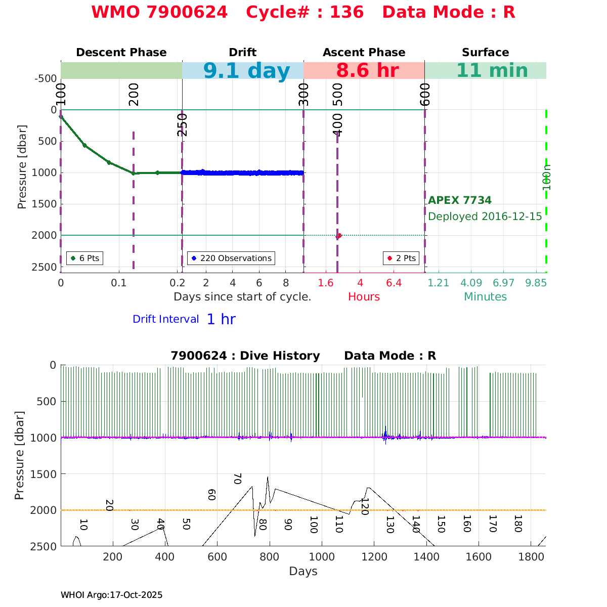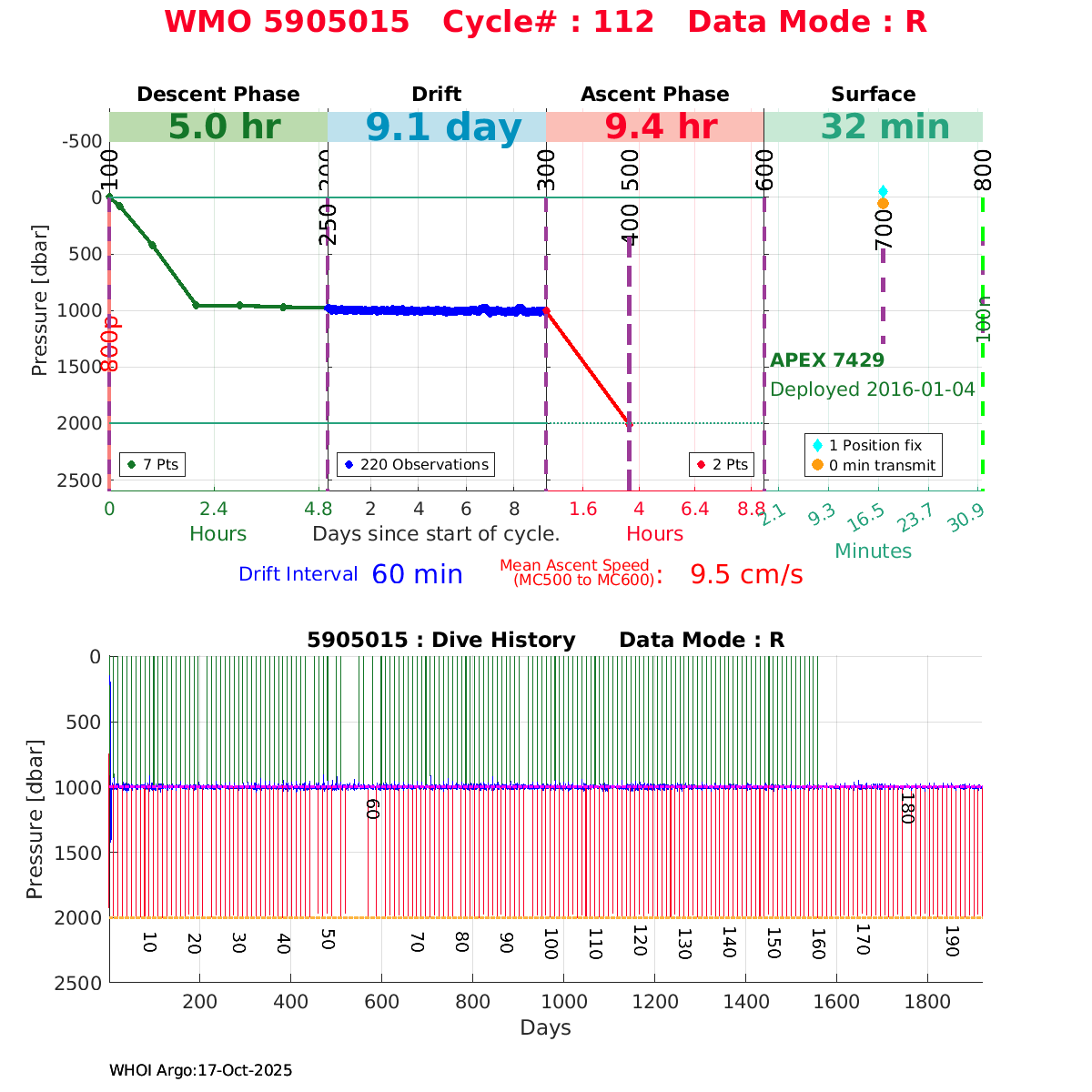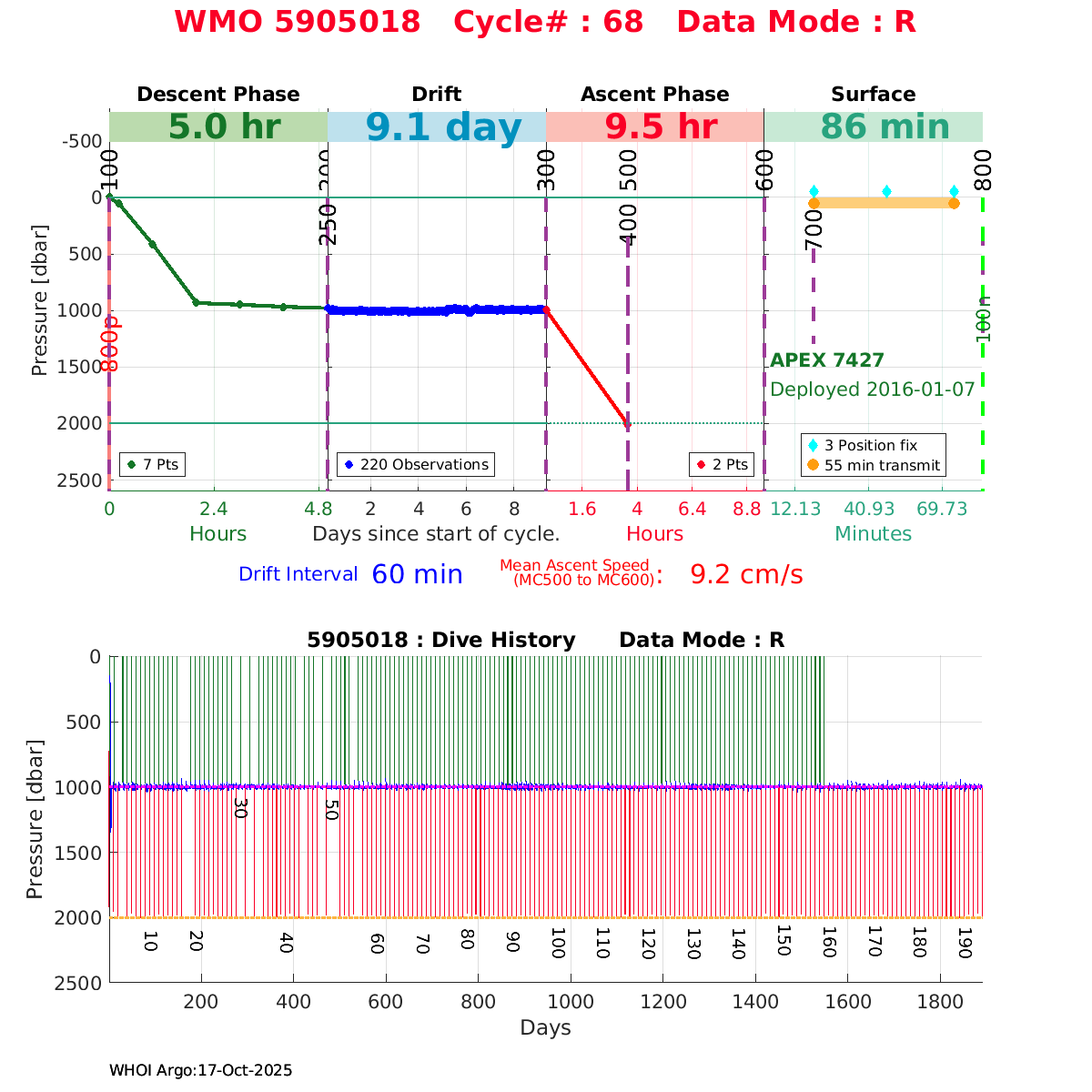 | WMO: #5905018 DAC: csiro PI: Susan Wijffels APEX: #7427 SBE41CP_V2: #7053 DRUCK: #4224991 Altimeter Comparison (IFREMER) EuroArgo Link | ![]() |