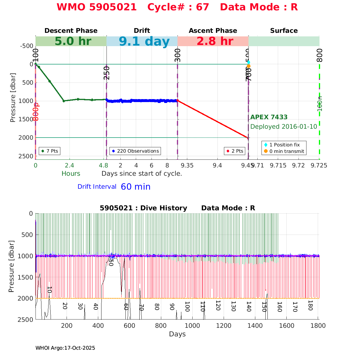 | WMO: #5905021 DAC: csiro PI: Susan Wijffels APEX: #7433 SBE41CP_V2: #7034 DRUCK: #4224970 Altimeter Comparison (IFREMER) EuroArgo Link | ![]() |