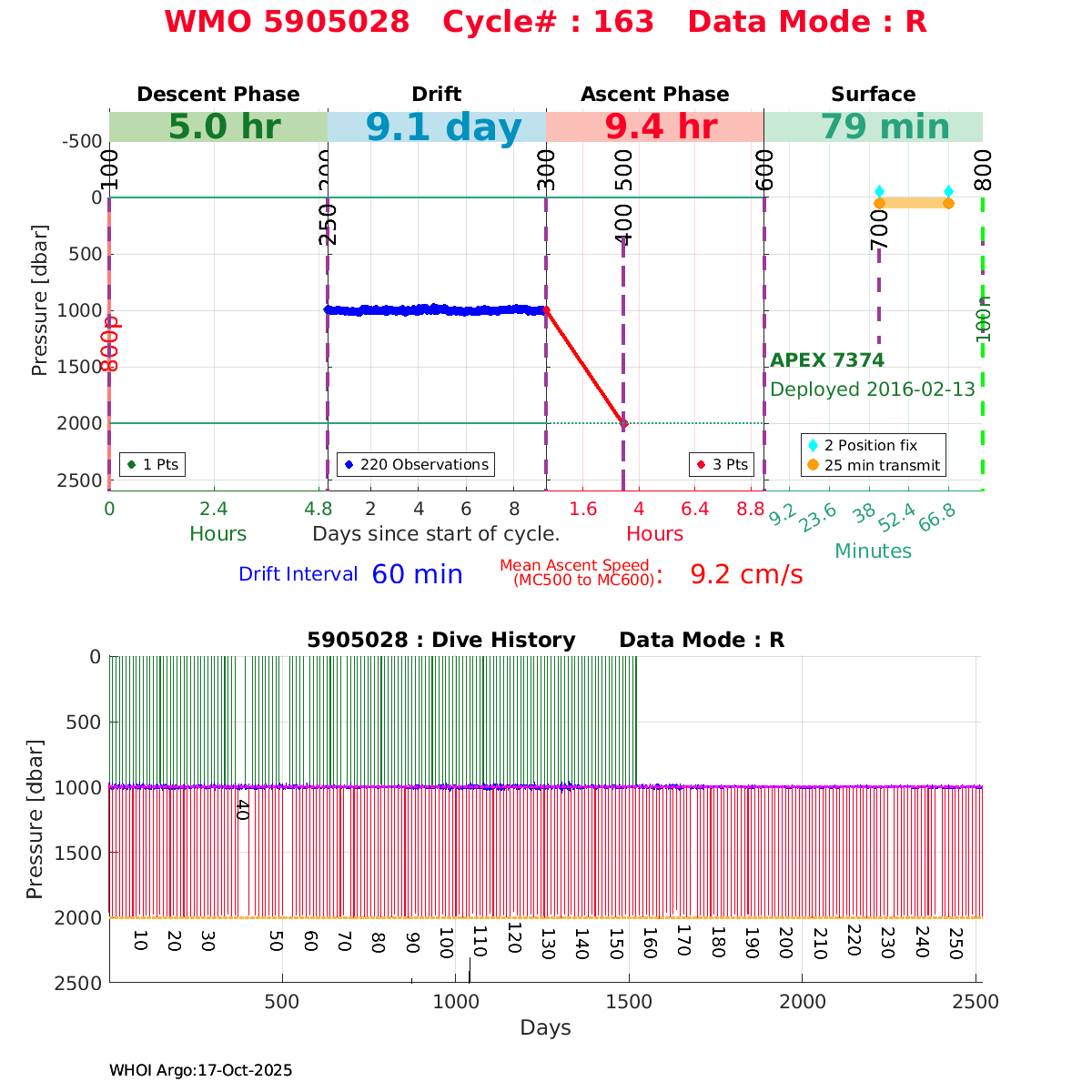 | WMO: #5905017 DAC: csiro PI: Susan Wijffels APEX: #7432 SBE41CP_V2: #7033 DRUCK: #4224986 Altimeter Comparison (IFREMER) EuroArgo Link | ![]() |