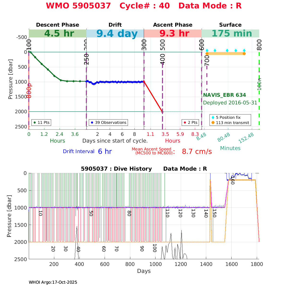 | WMO: #5905037 DAC: csiro PI: Susan Wijffels NAVIS_EBR: #634 SBE41CP_V7.2.5: #8015 DRUCK: #10229354 Altimeter Comparison (IFREMER) EuroArgo Link | ![]() |