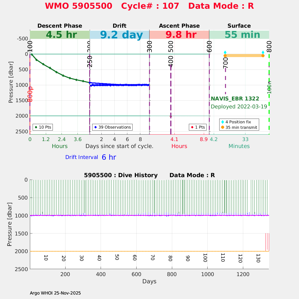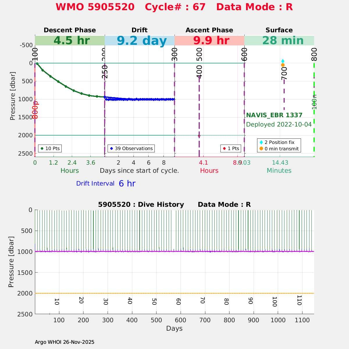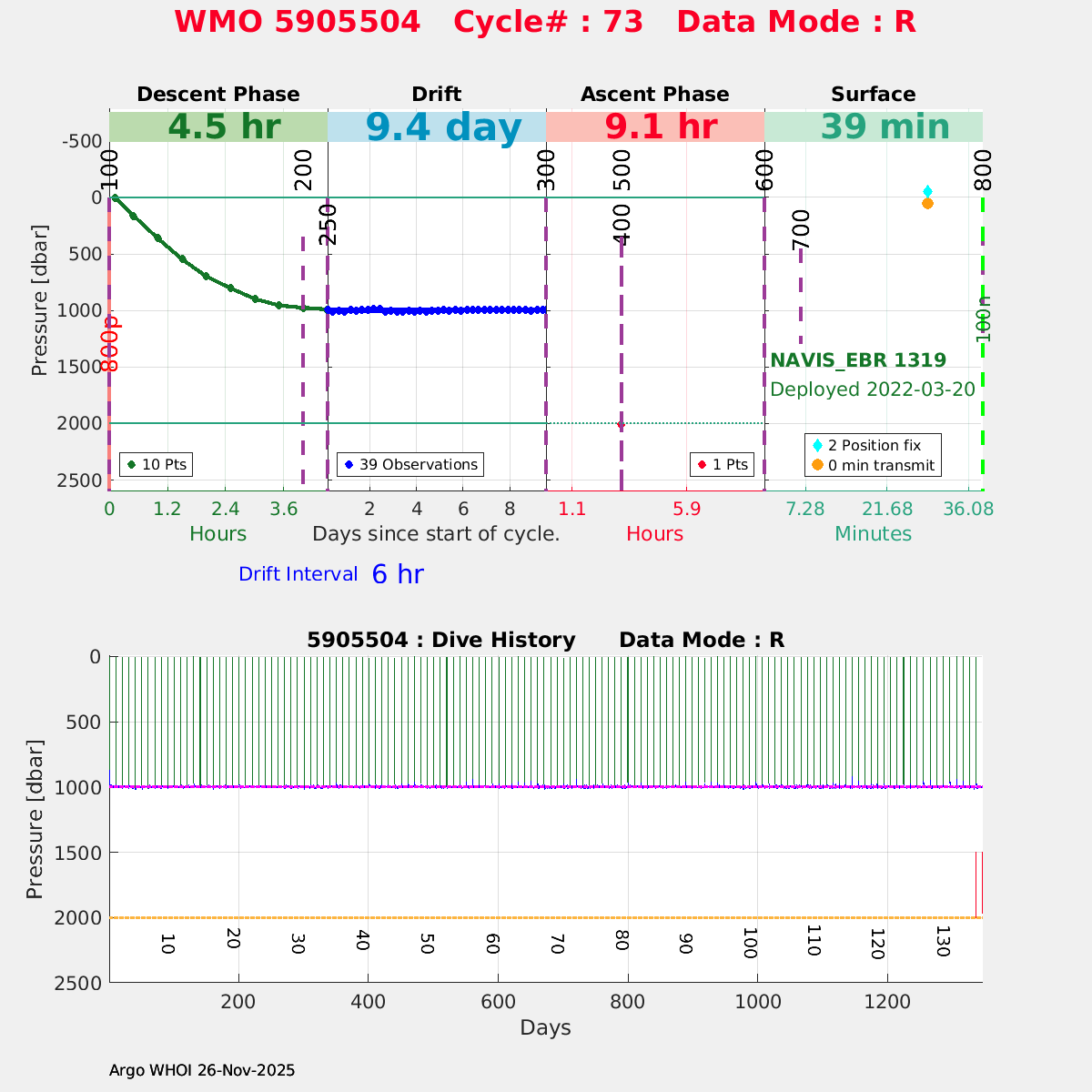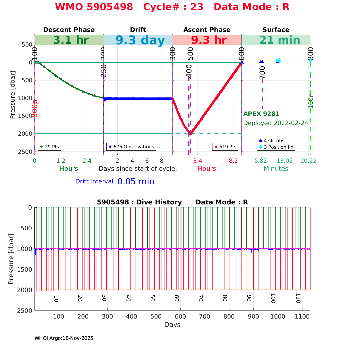 | WMO: #5905525 DAC: csiro PI: Peter OKE APEX: #9293 DRUCK: #11620492 SBE41CP: #13380 Altimeter Comparison (IFREMER) EuroArgo Link | ![]() |