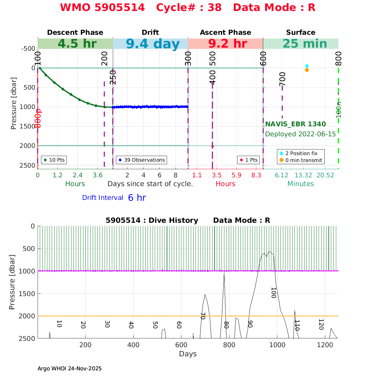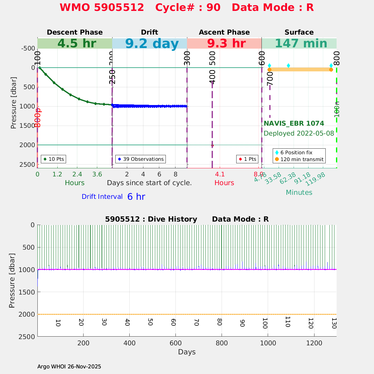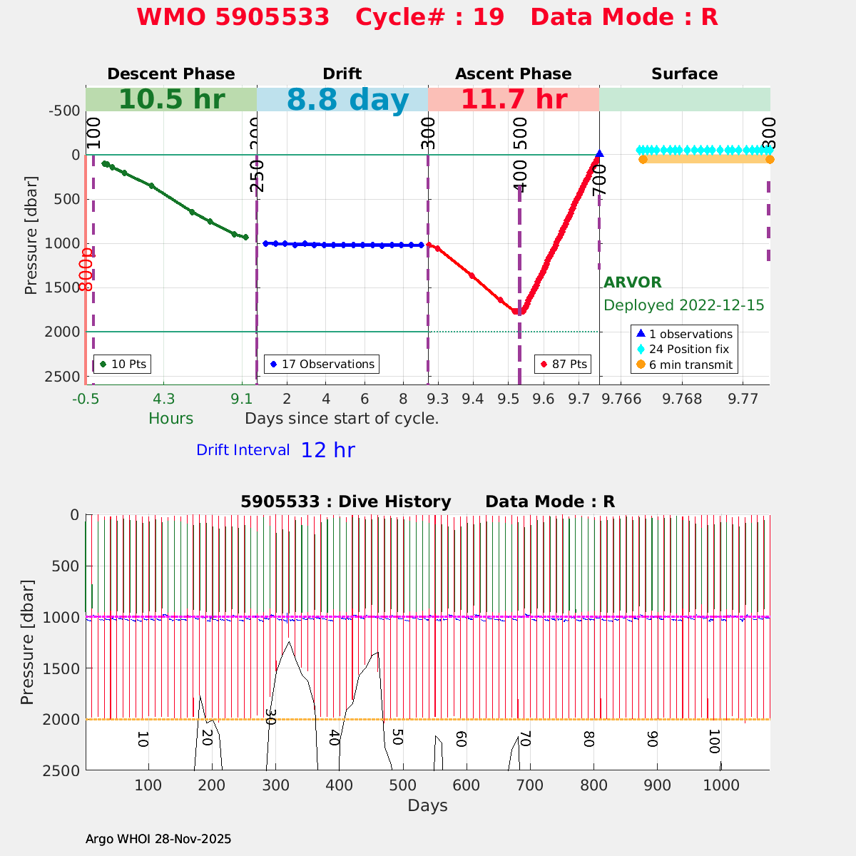 | WMO: #5905525 DAC: csiro PI: Peter OKE APEX: #9293 DRUCK: #11620492 SBE41CP: #13380 Altimeter Comparison (IFREMER) EuroArgo Link | ![]() |