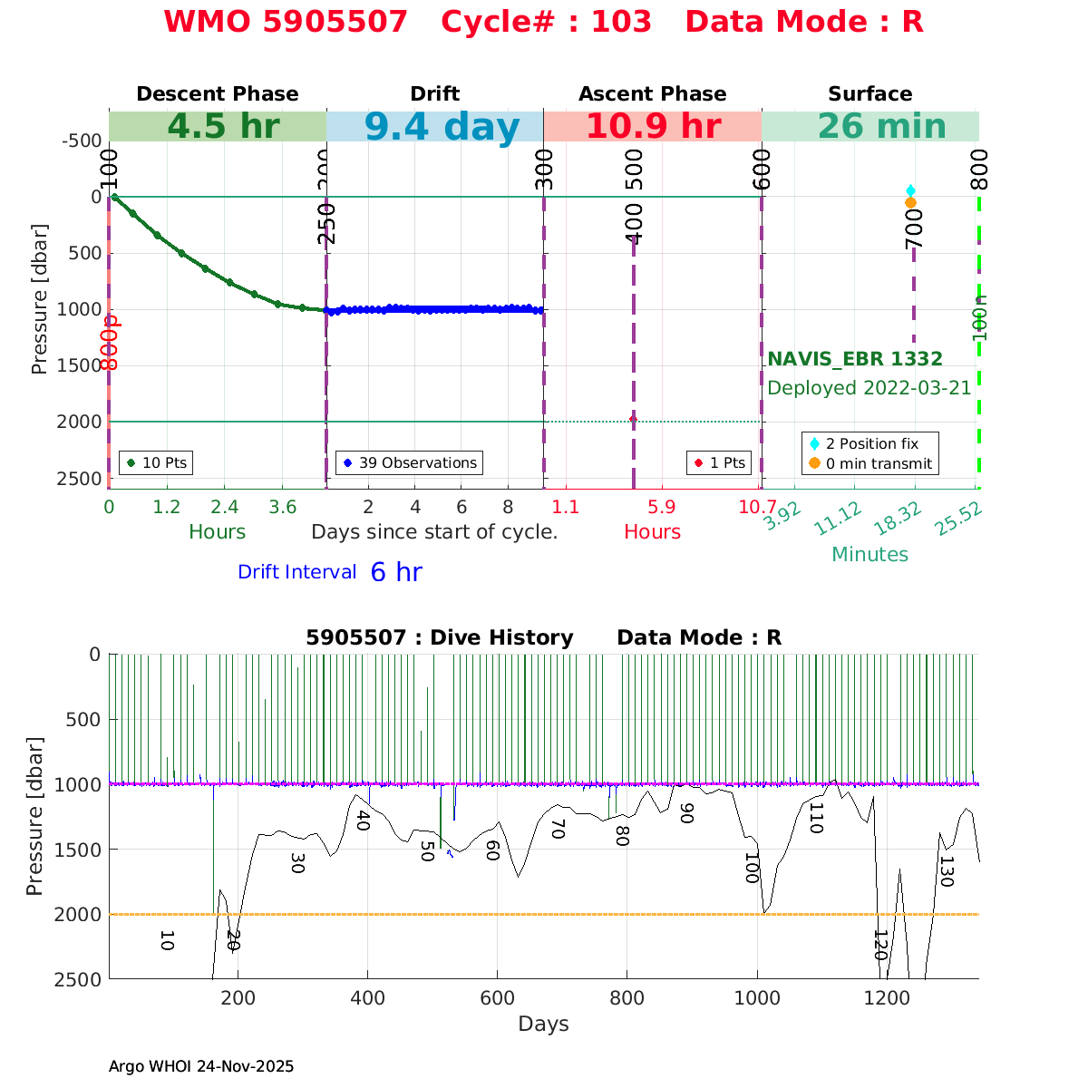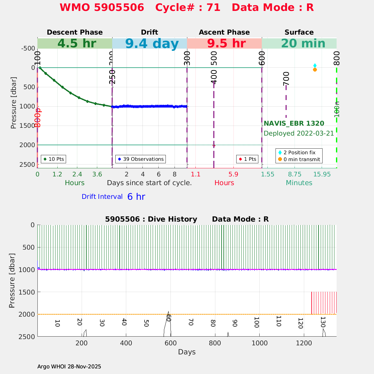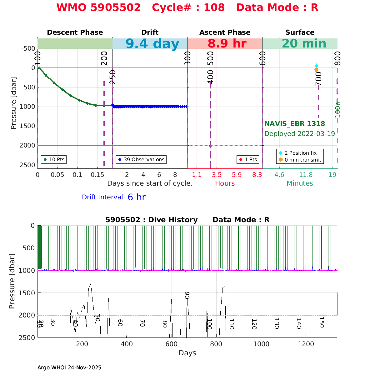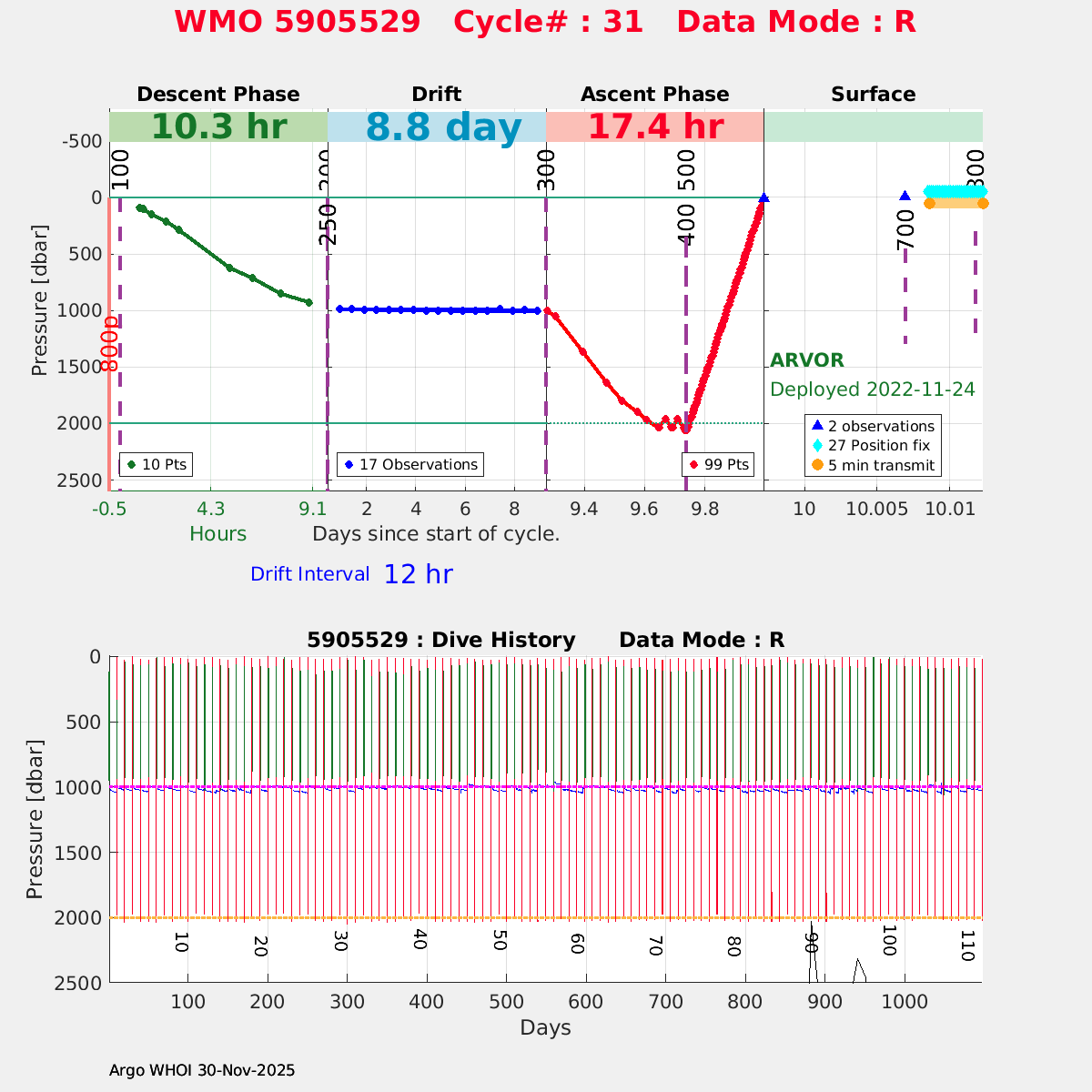 | WMO: #5905525 DAC: csiro PI: Peter OKE APEX: #9293 DRUCK: #11620492 SBE41CP: #13380 Altimeter Comparison (IFREMER) EuroArgo Link | ![]() |