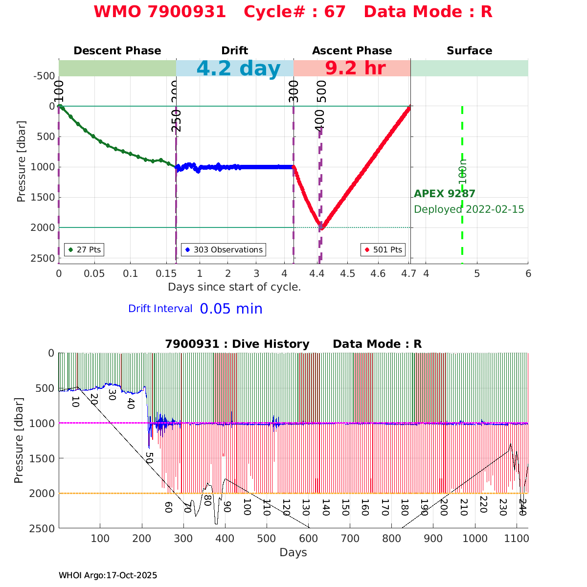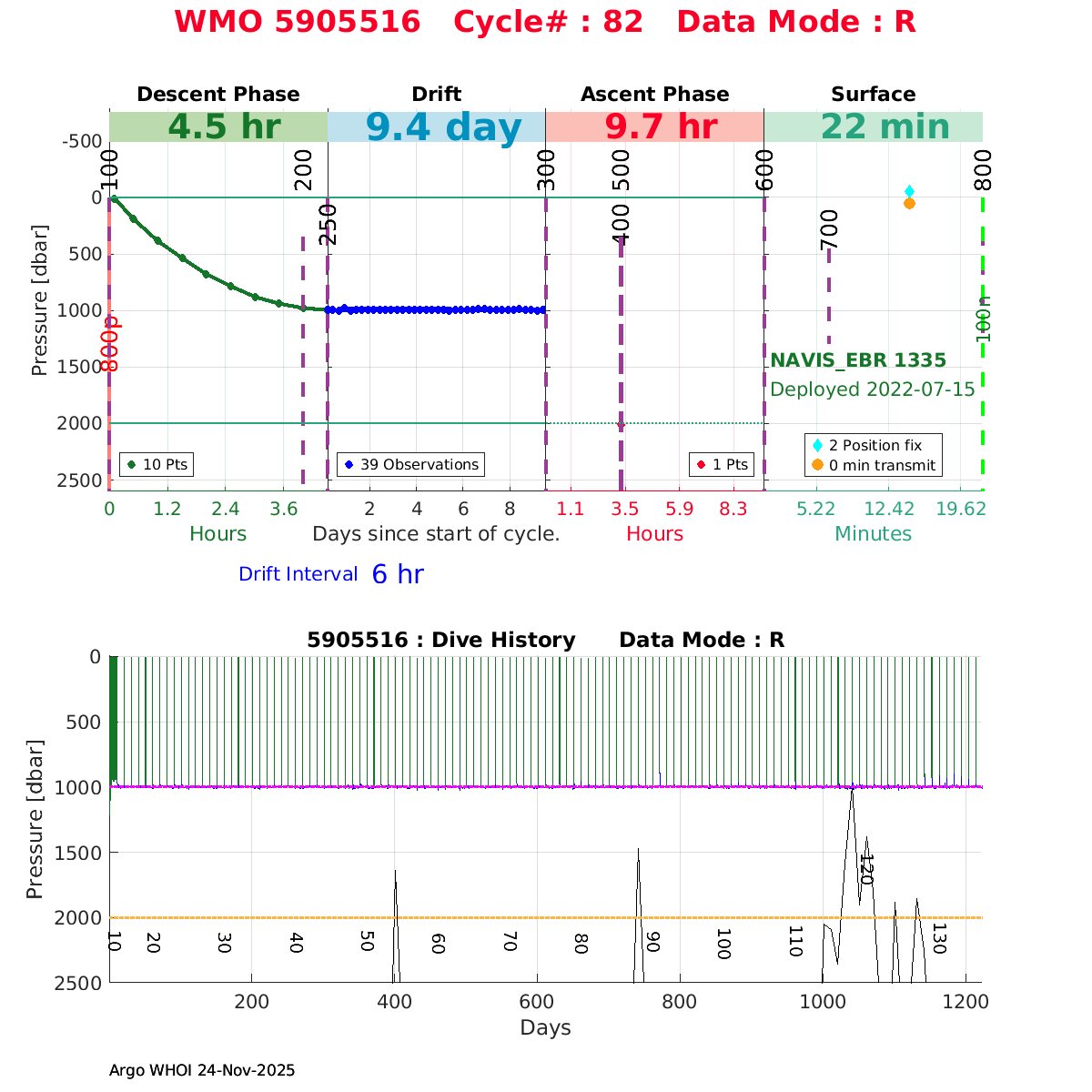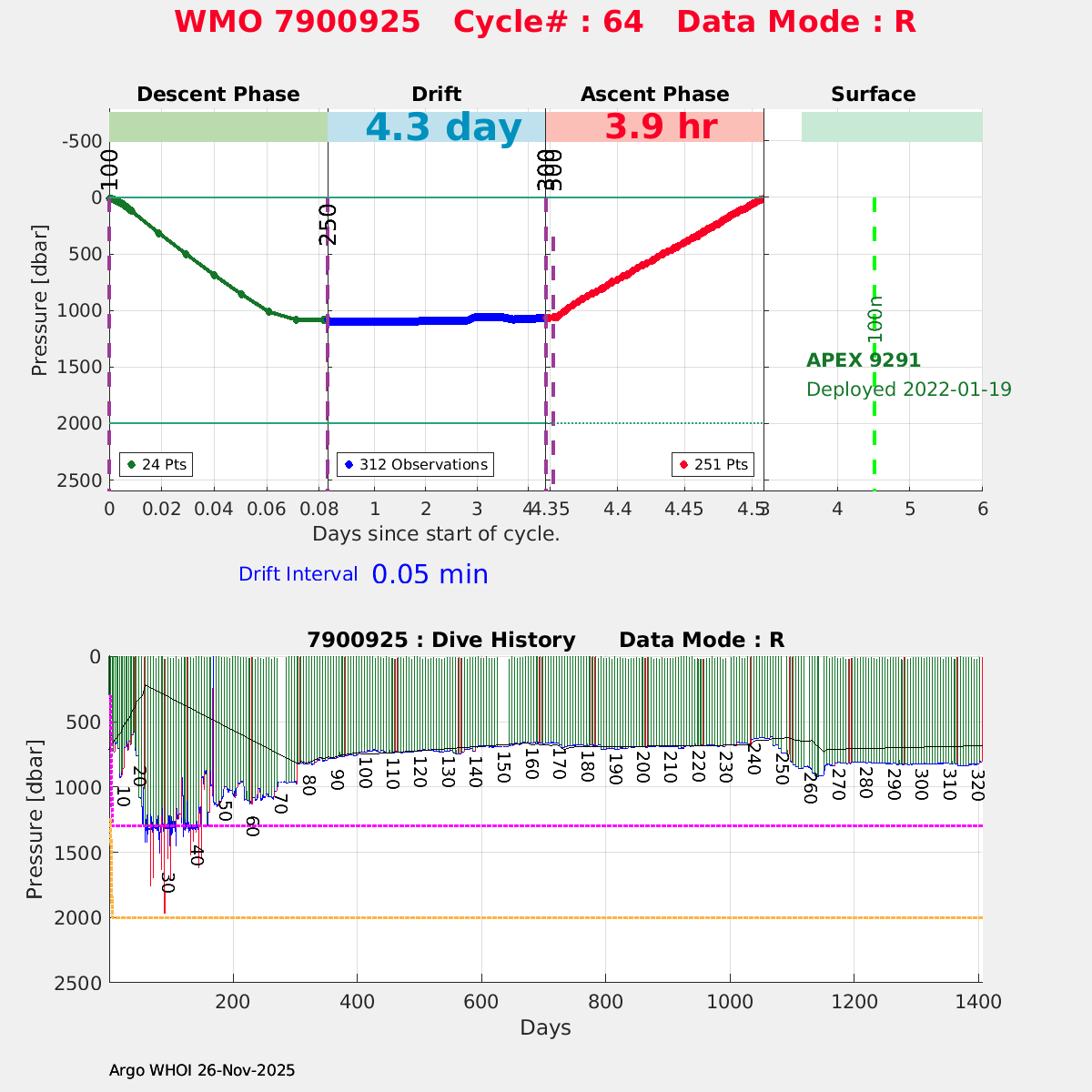 | WMO: #7900938 DAC: csiro PI: Peter Oke APEX: #9751 DRUCK: #12069360 SBE41CP_V7.2.5: #17235 Altimeter Comparison (IFREMER) EuroArgo Link | ![]() |