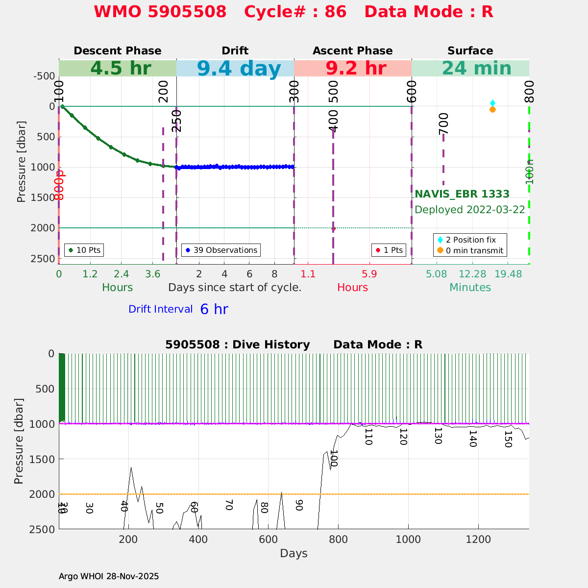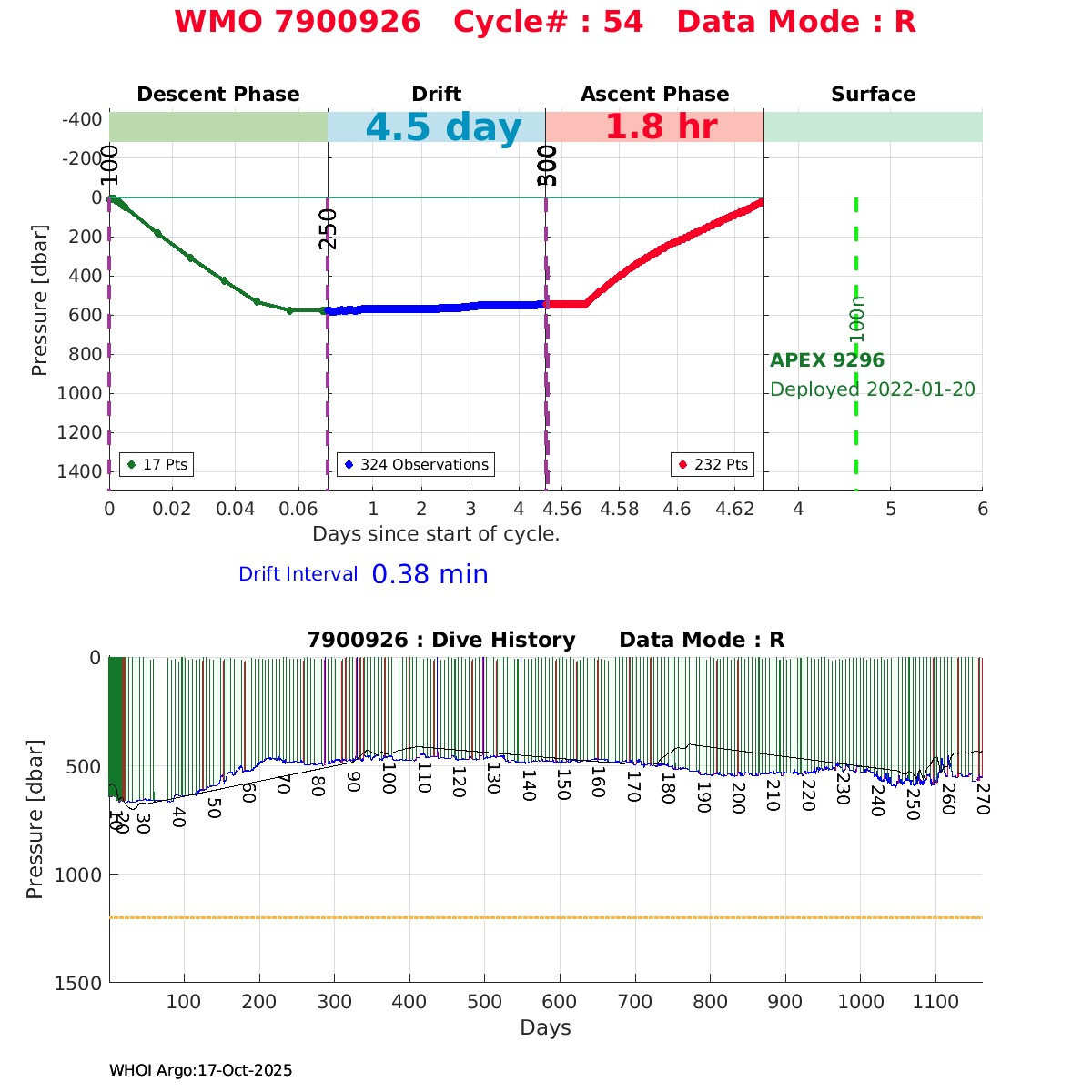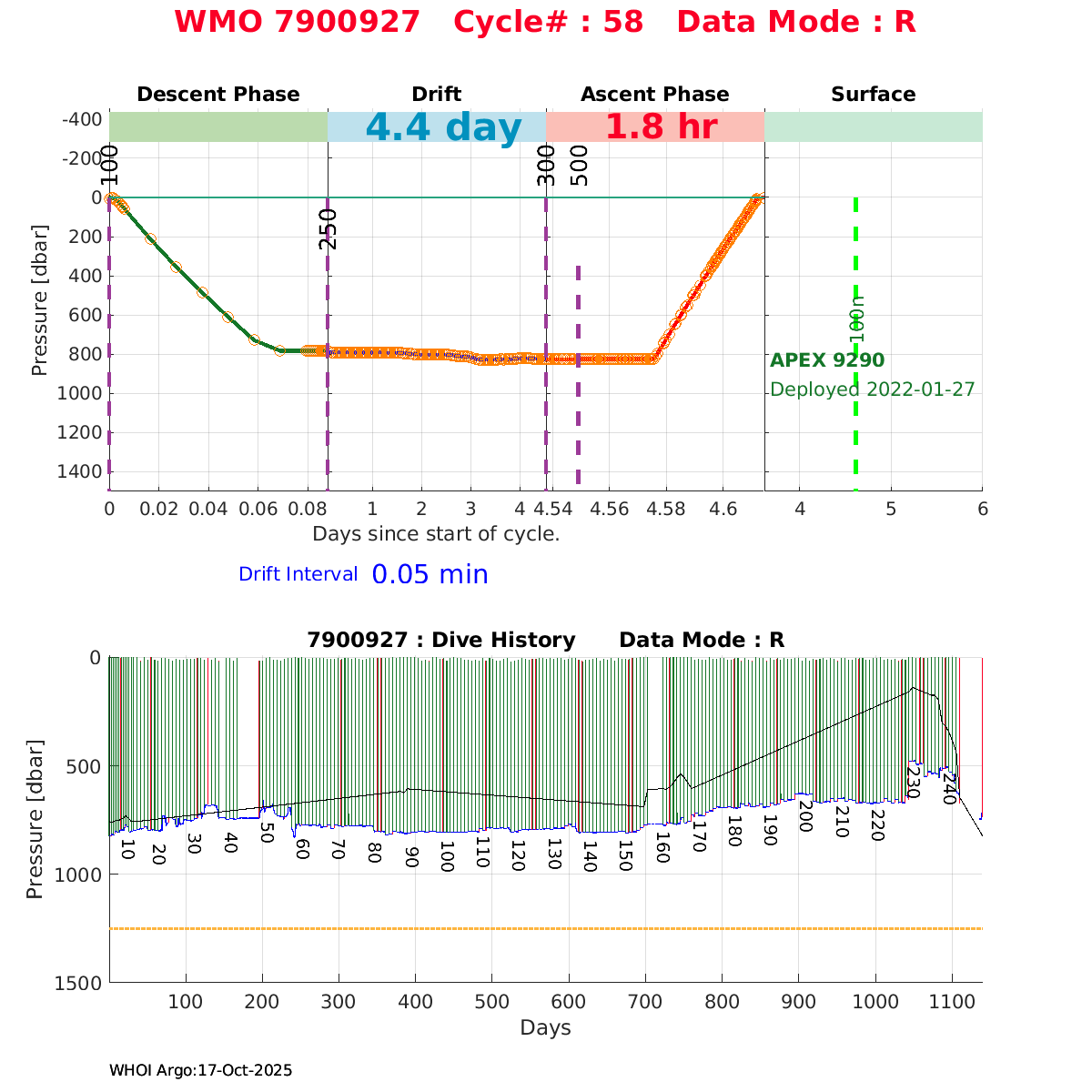 | WMO: #7900938 DAC: csiro PI: Peter Oke APEX: #9751 DRUCK: #12069360 SBE41CP_V7.2.5: #17235 Altimeter Comparison (IFREMER) EuroArgo Link | ![]() |