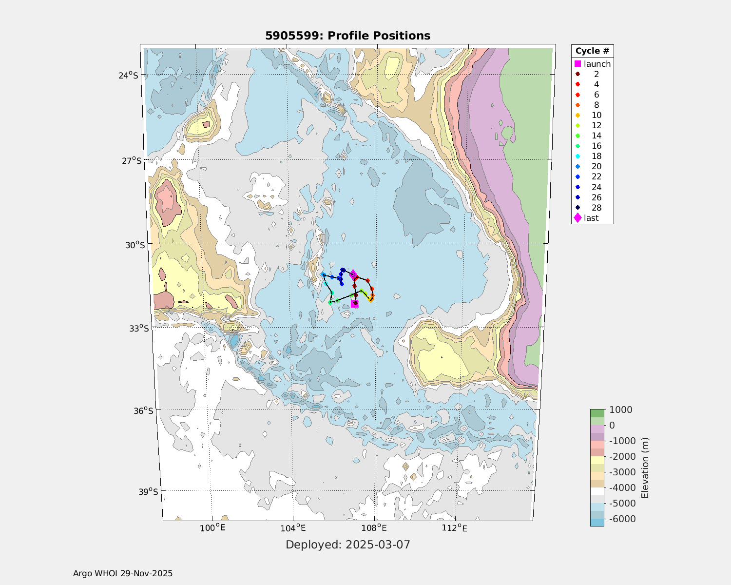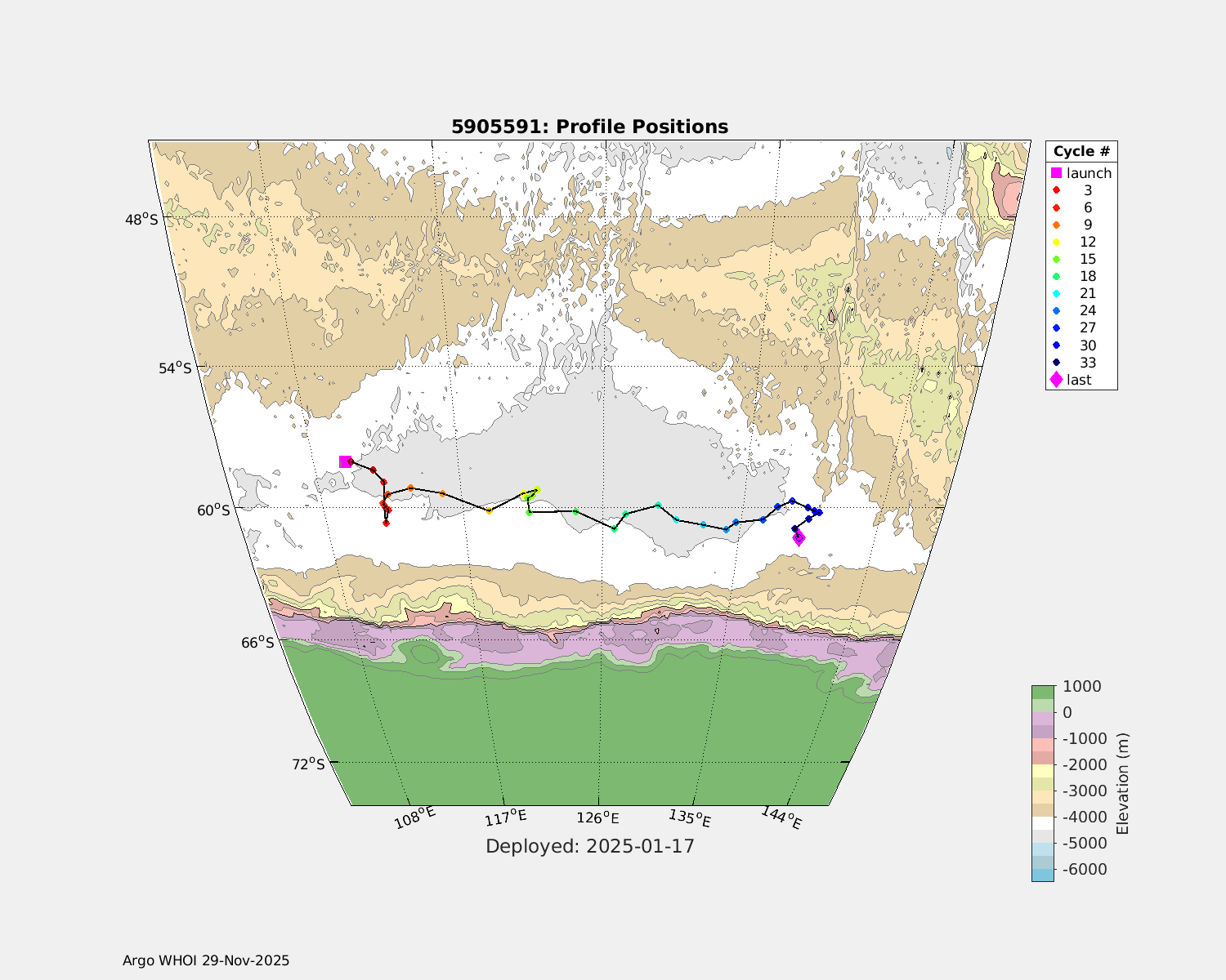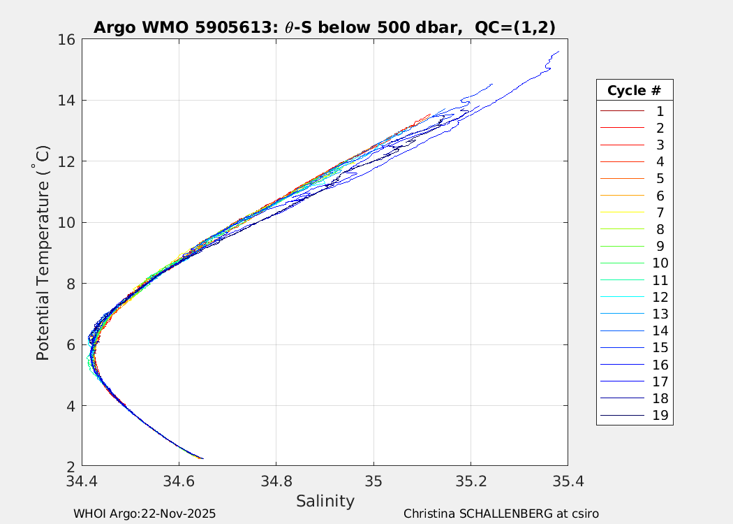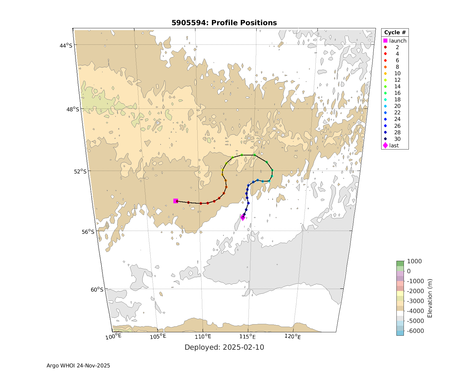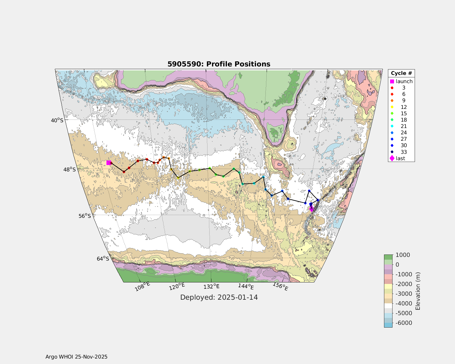 | WMO: #5905614 DAC: csiro PI: Esmee VAN WIJK SOLO_D MRV: #12091 KISTLER: #6146053 SBE61: #6003 Altimeter Comparison (IFREMER) EuroArgo Link | n/a | n/a | ![]() |