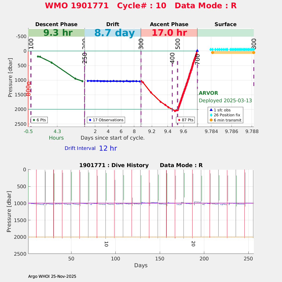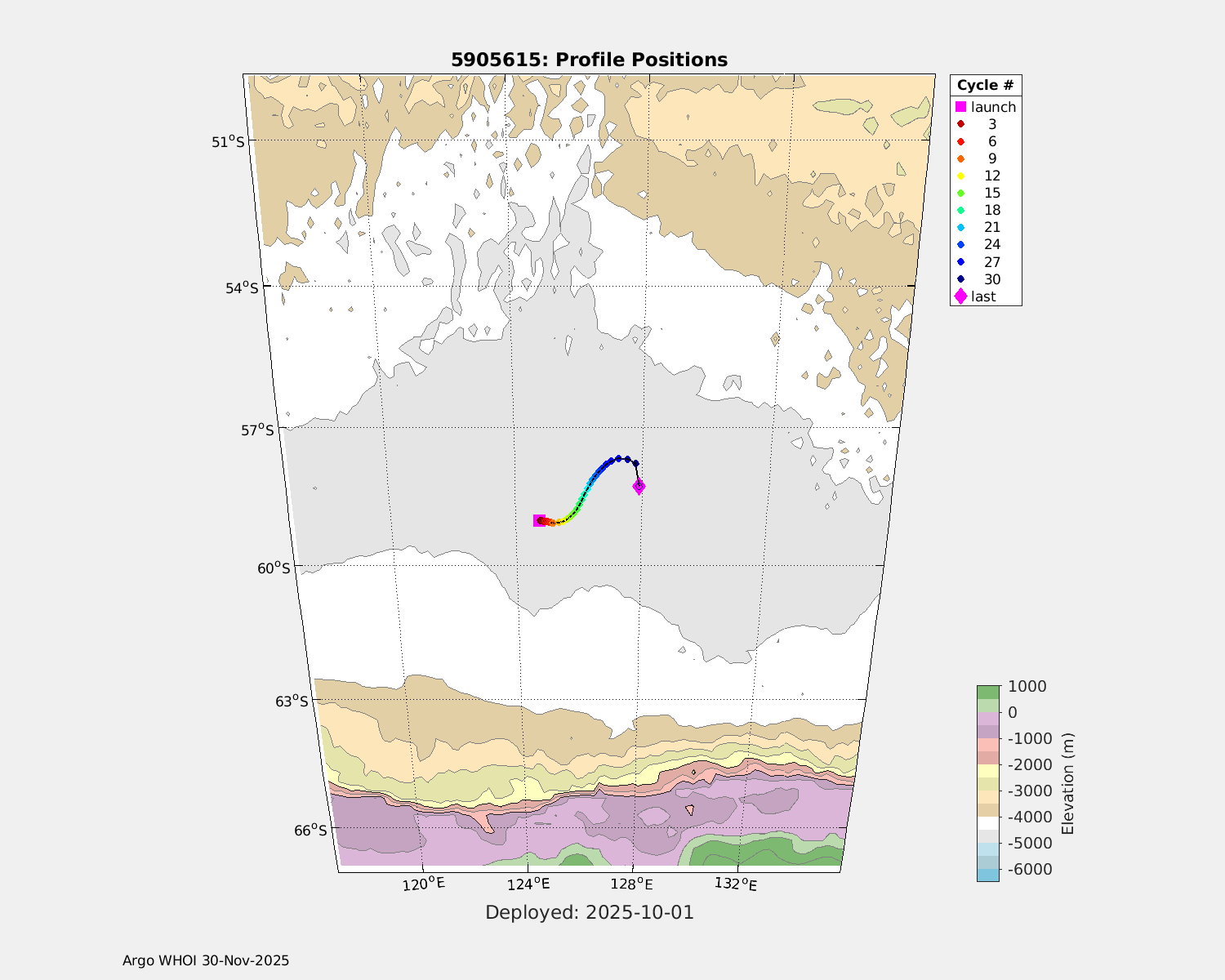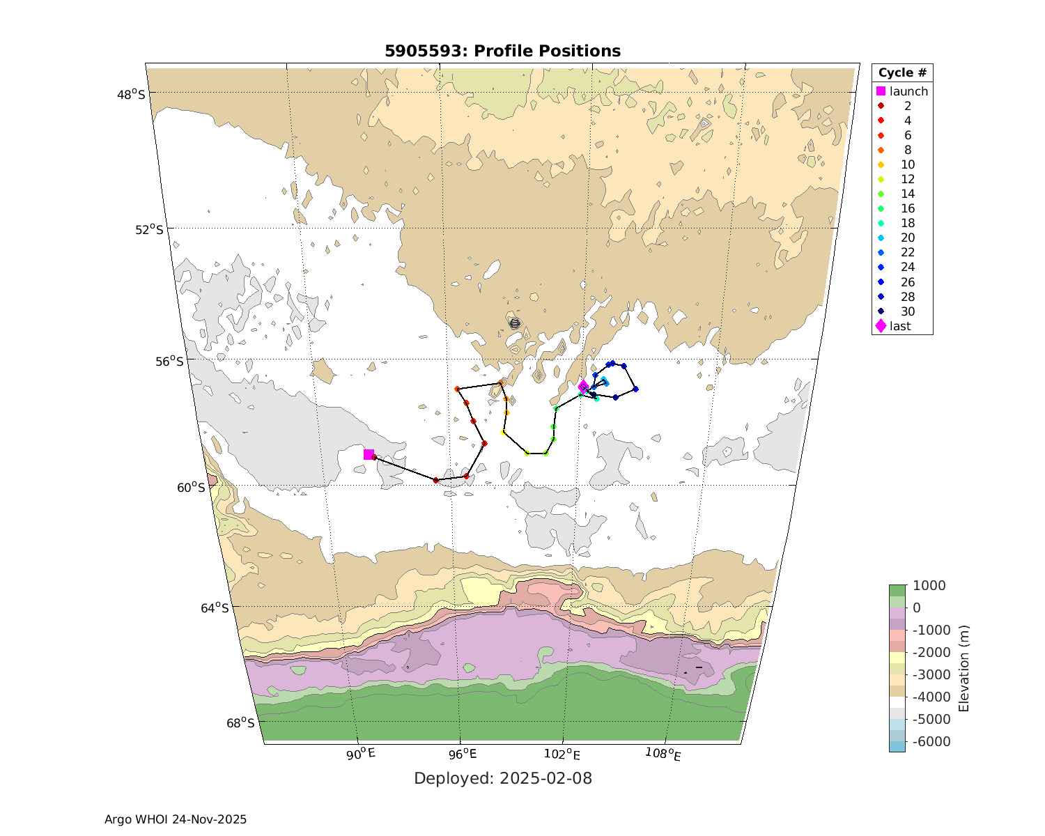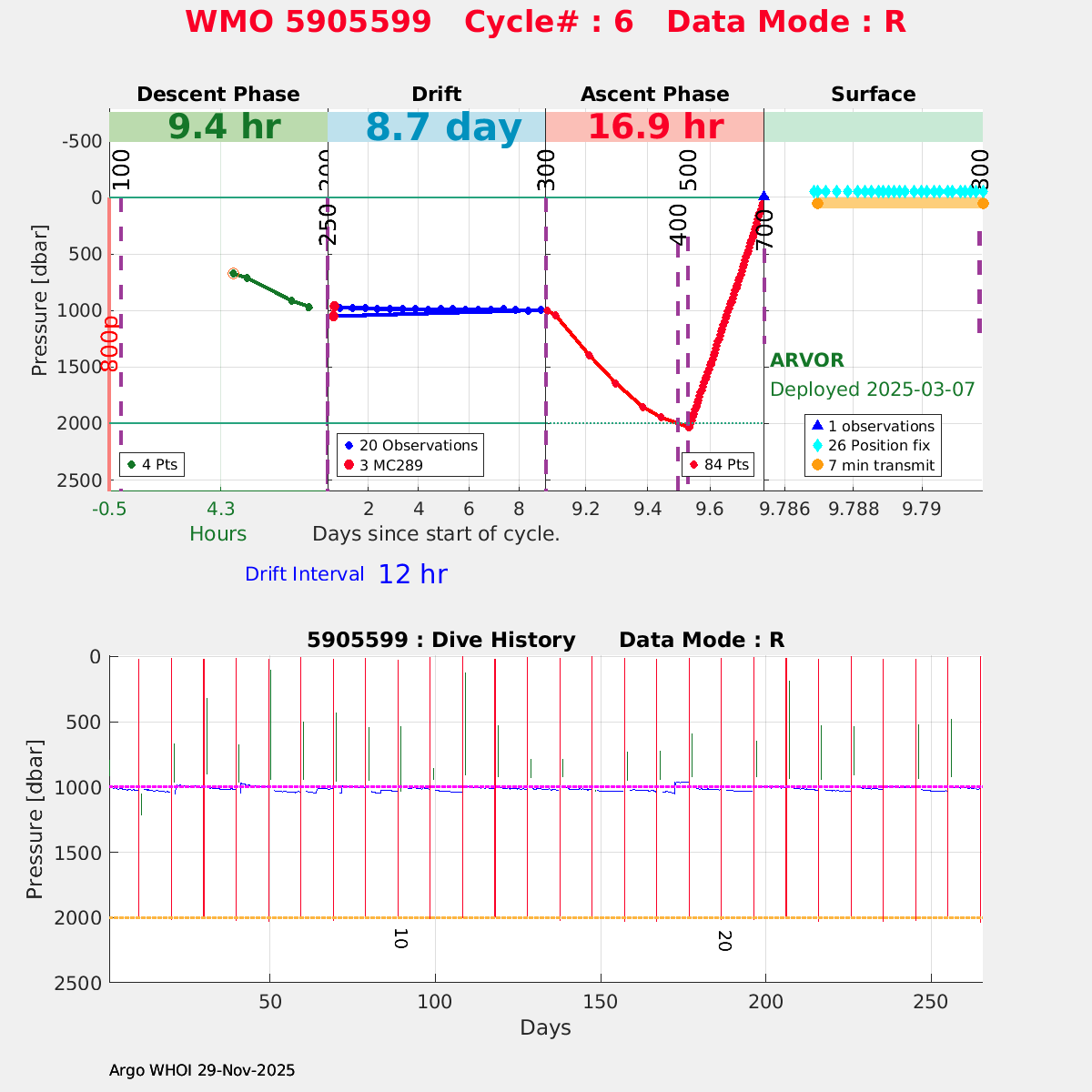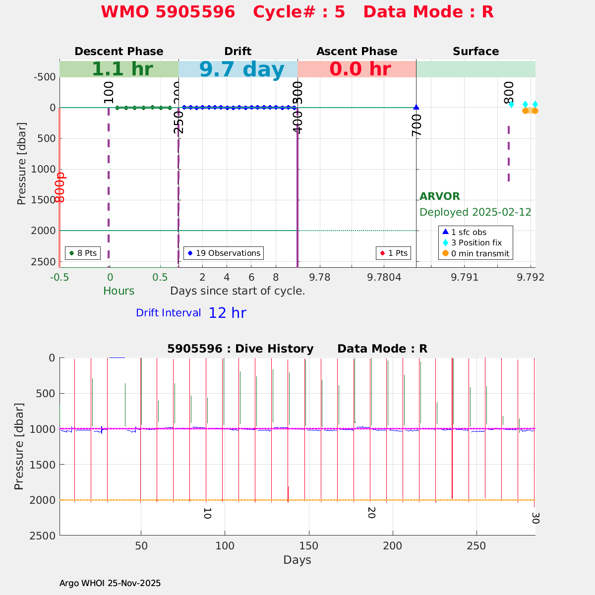 | WMO: #5905614 DAC: csiro PI: Esmee VAN WIJK SOLO_D MRV: #12091 KISTLER: #6146053 SBE61: #6003 Altimeter Comparison (IFREMER) EuroArgo Link | n/a | n/a | ![]() |