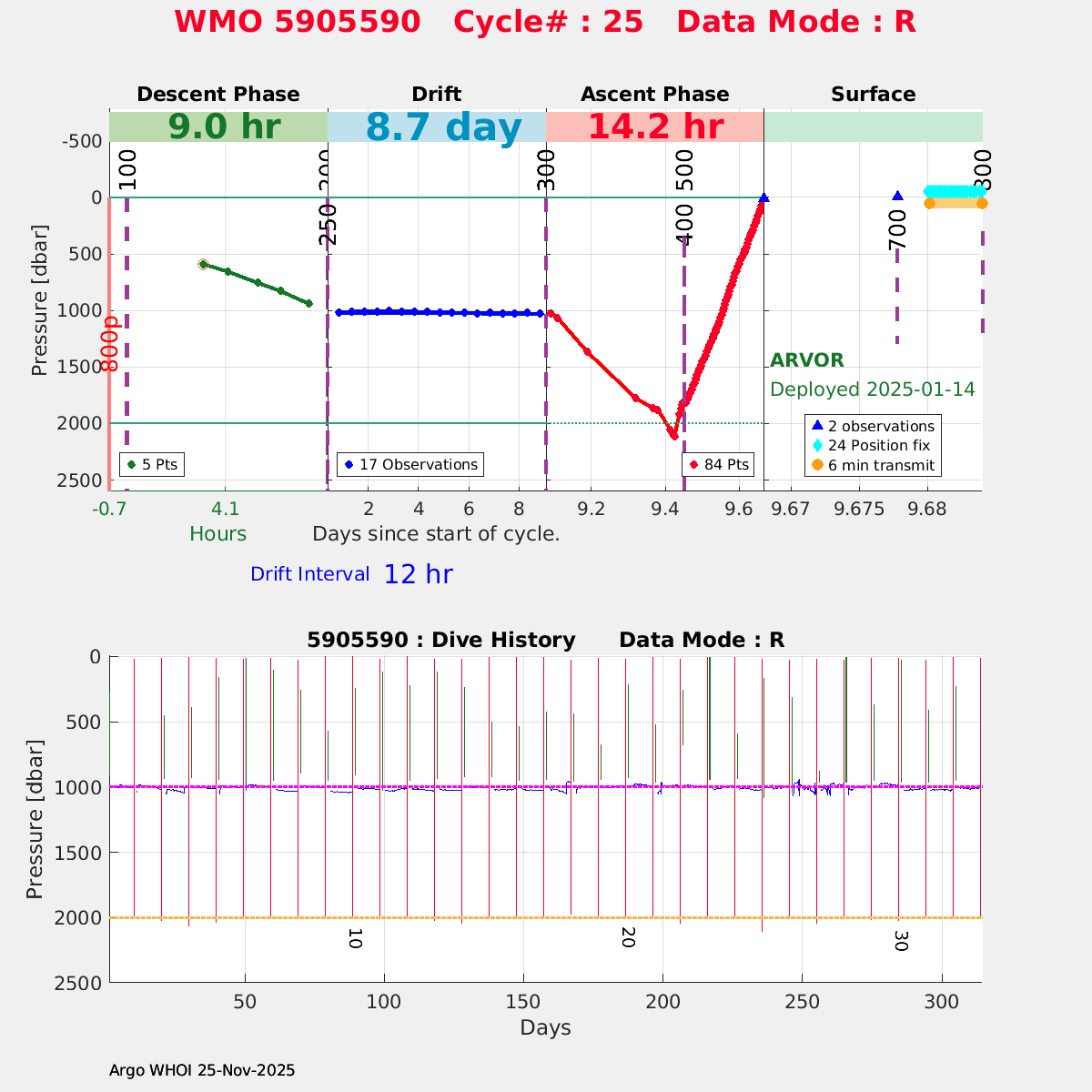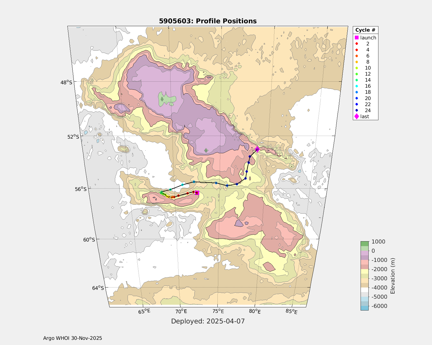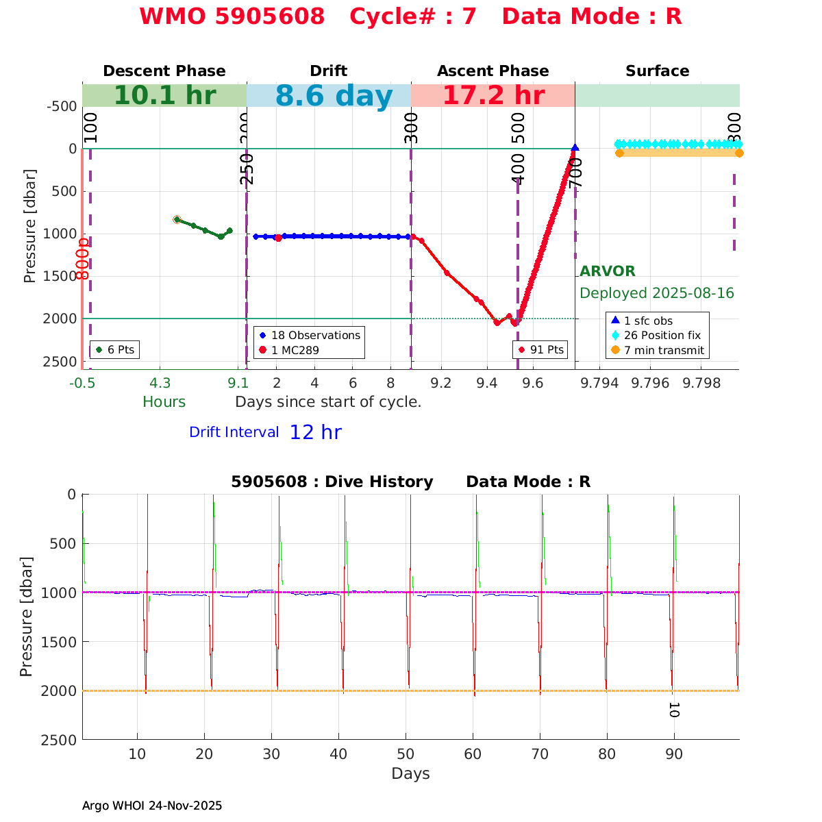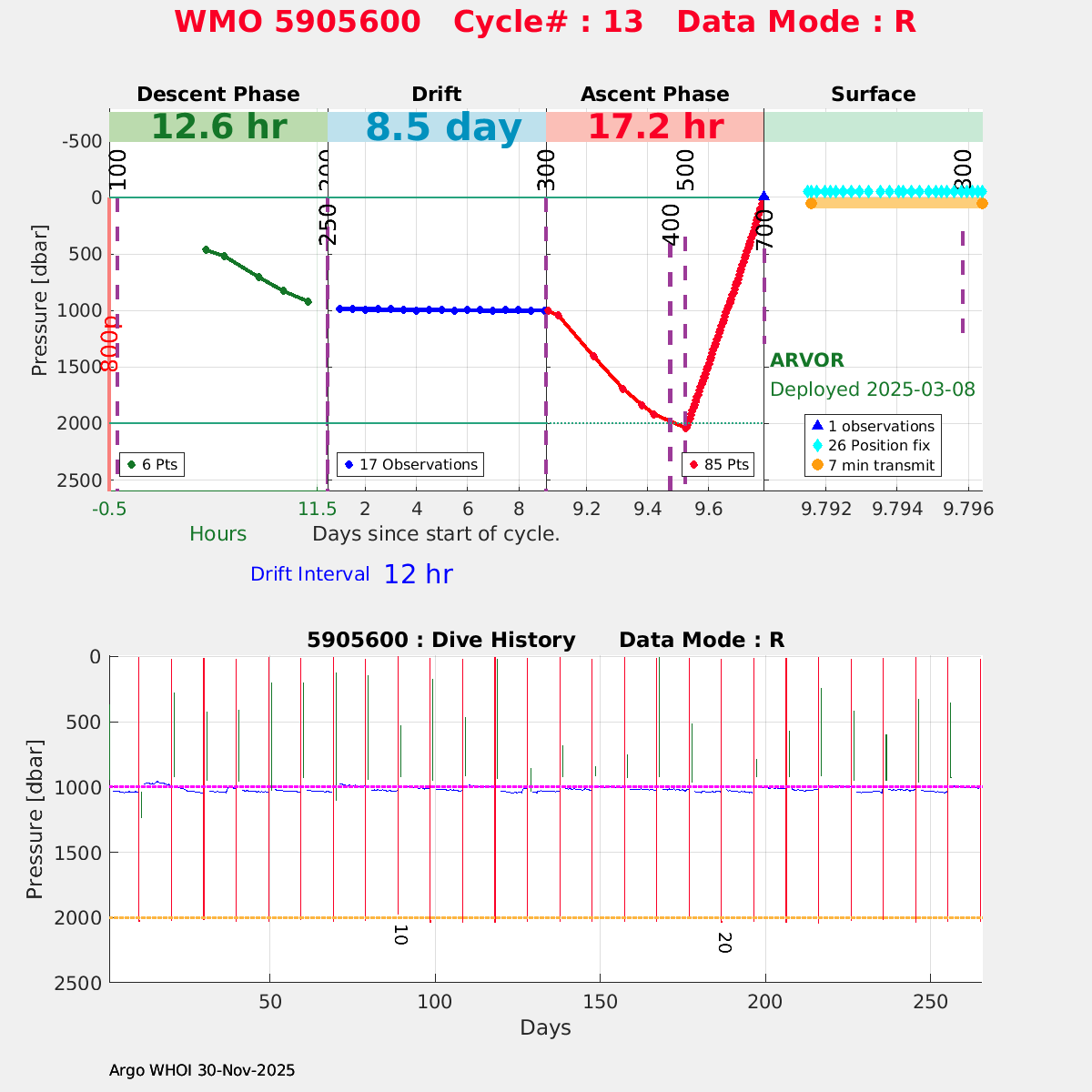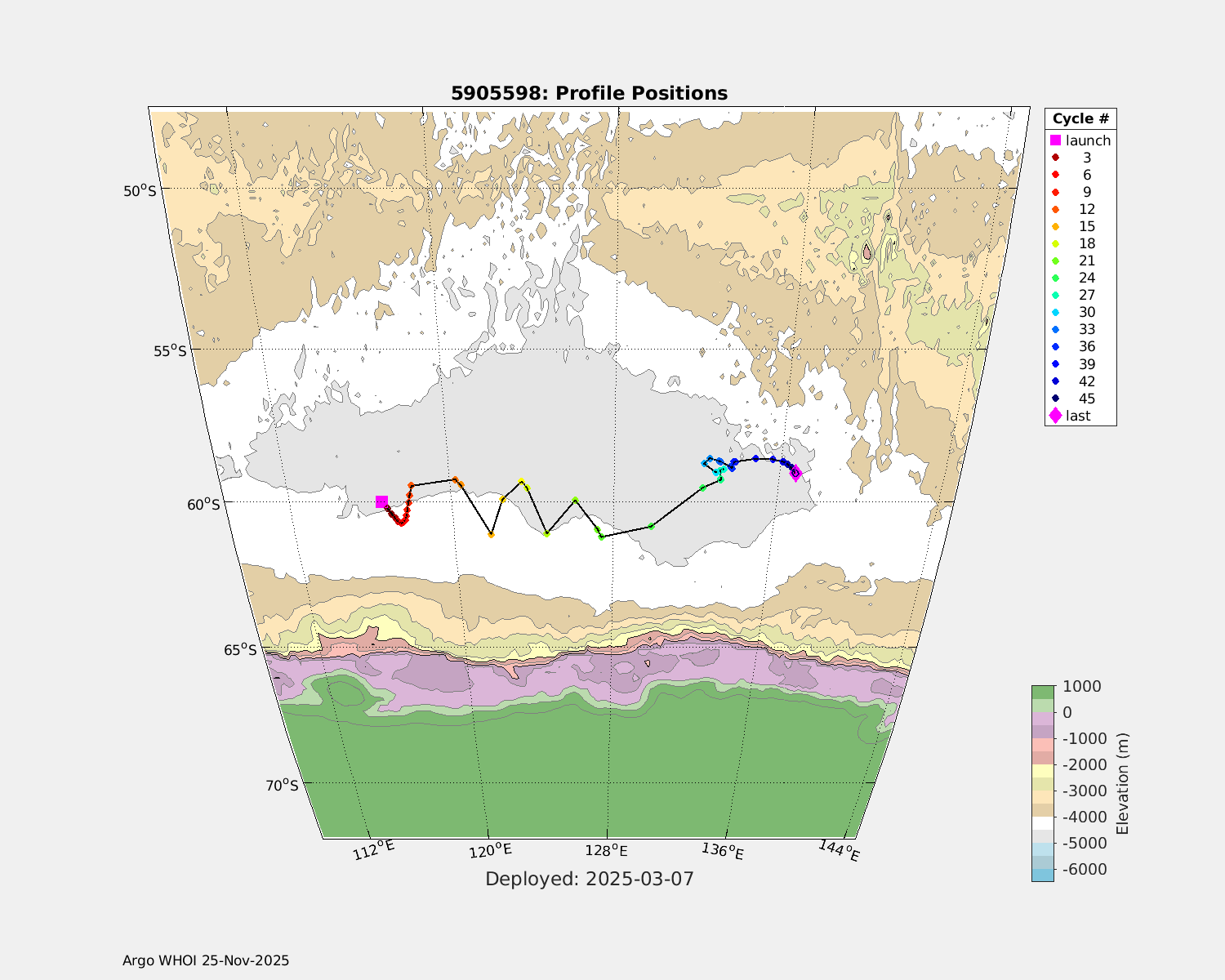| WMO: #5905614 DAC: csiro PI: Esmee VAN WIJK SOLO_D MRV: #12091 KISTLER: #6146053 SBE61: #6003 Altimeter Comparison (IFREMER) EuroArgo Link | n/a | n/a | ![]() |