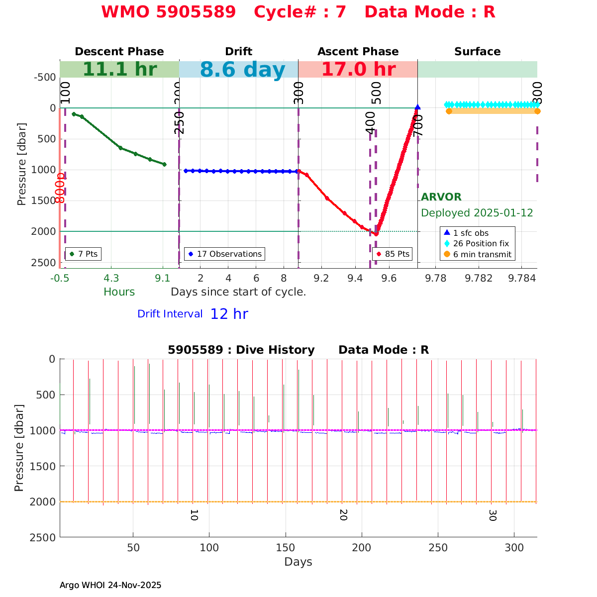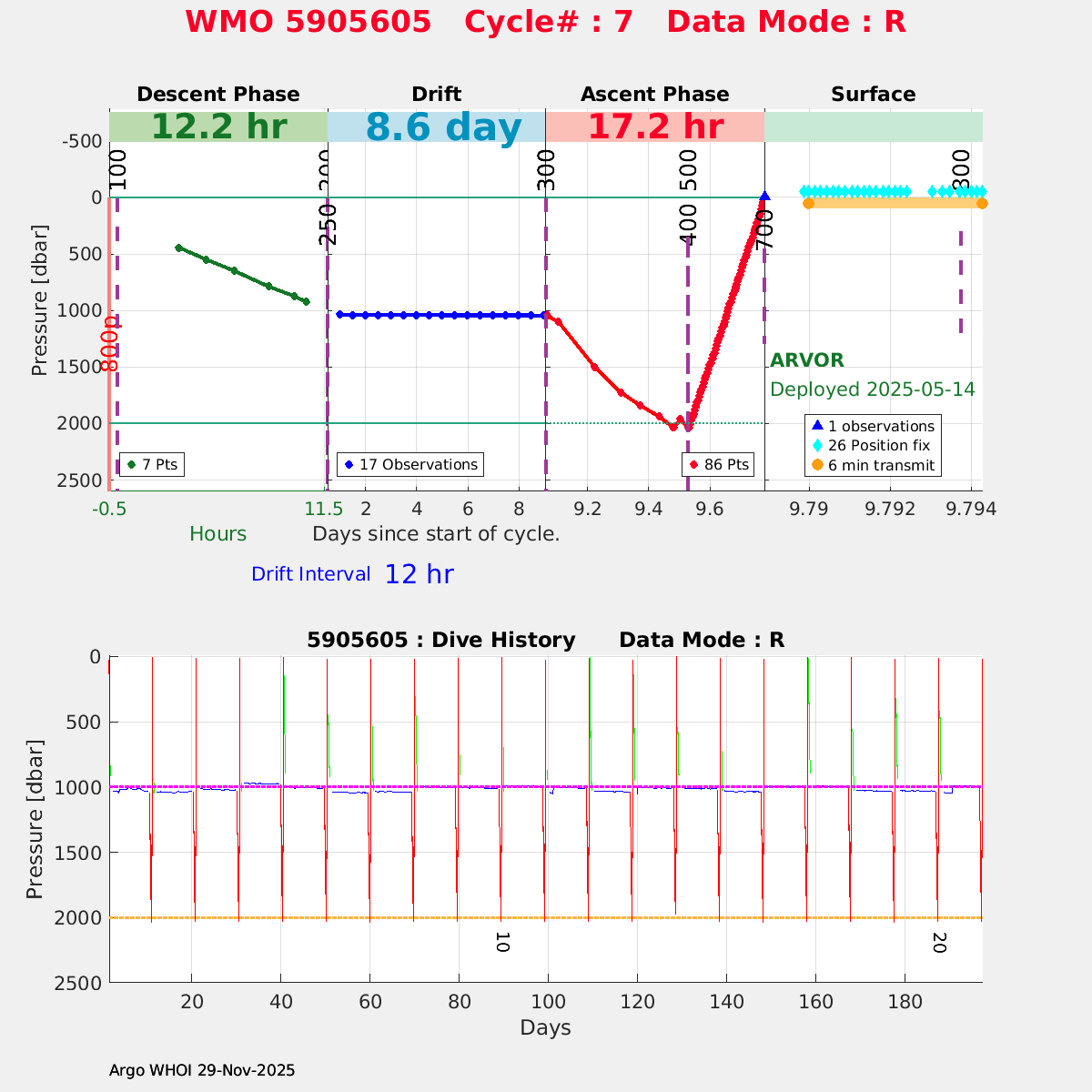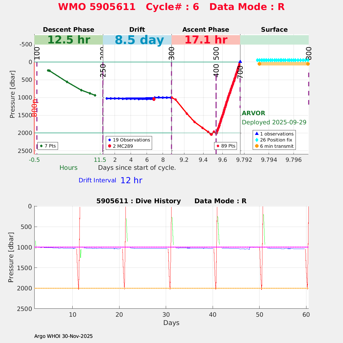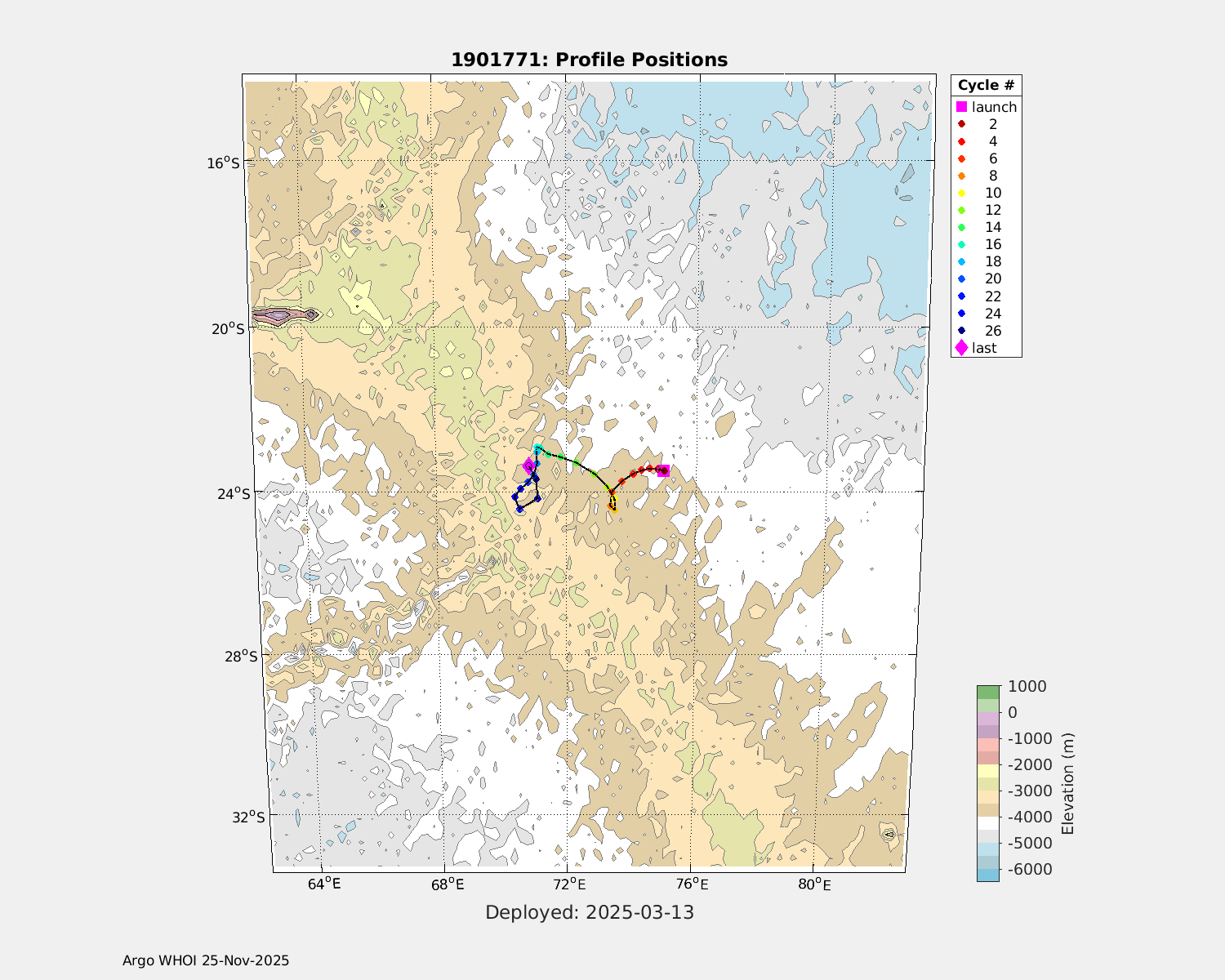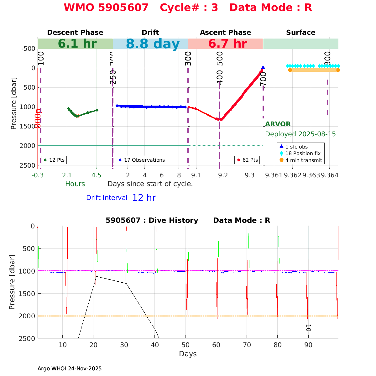 | WMO: #5905614 DAC: csiro PI: Esmee VAN WIJK SOLO_D MRV: #12091 KISTLER: #6146053 SBE61: #6003 Altimeter Comparison (IFREMER) EuroArgo Link | n/a | n/a | ![]() |