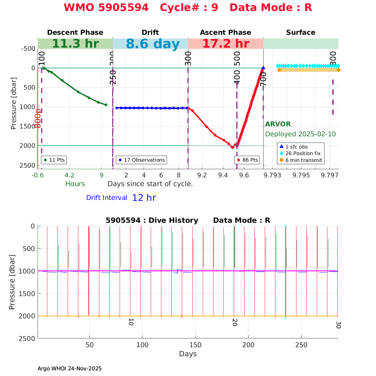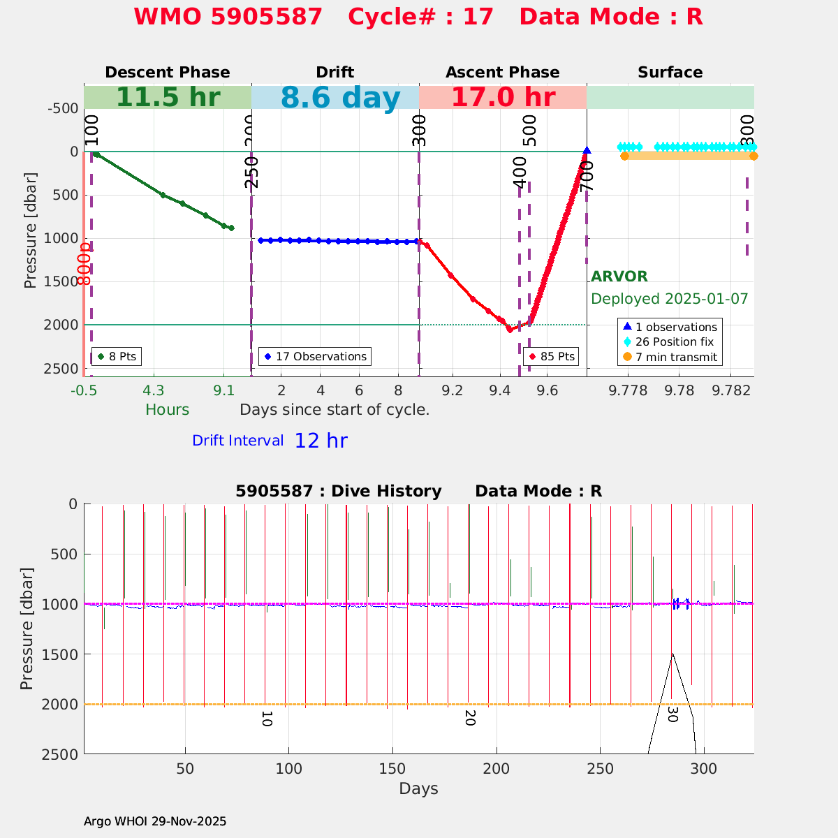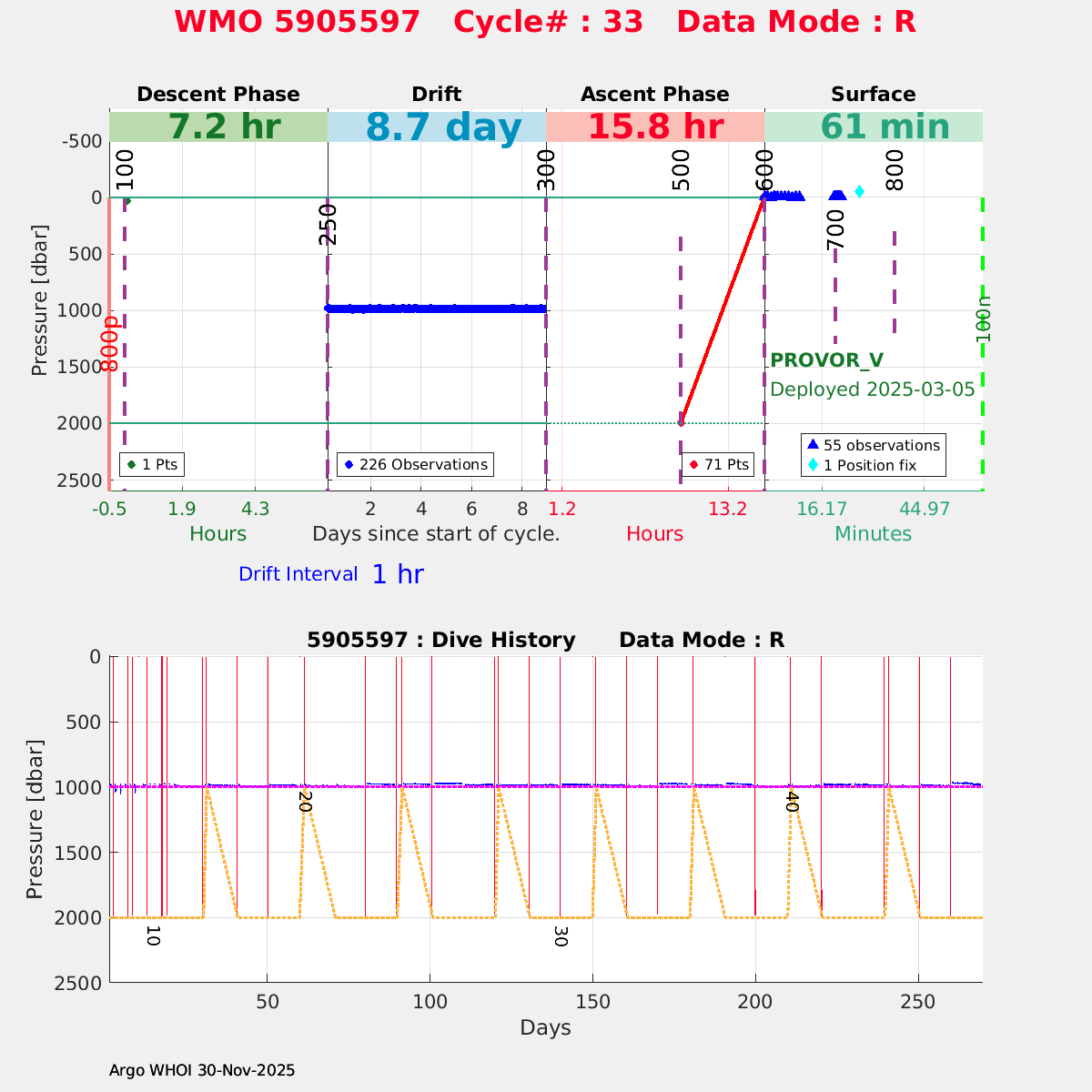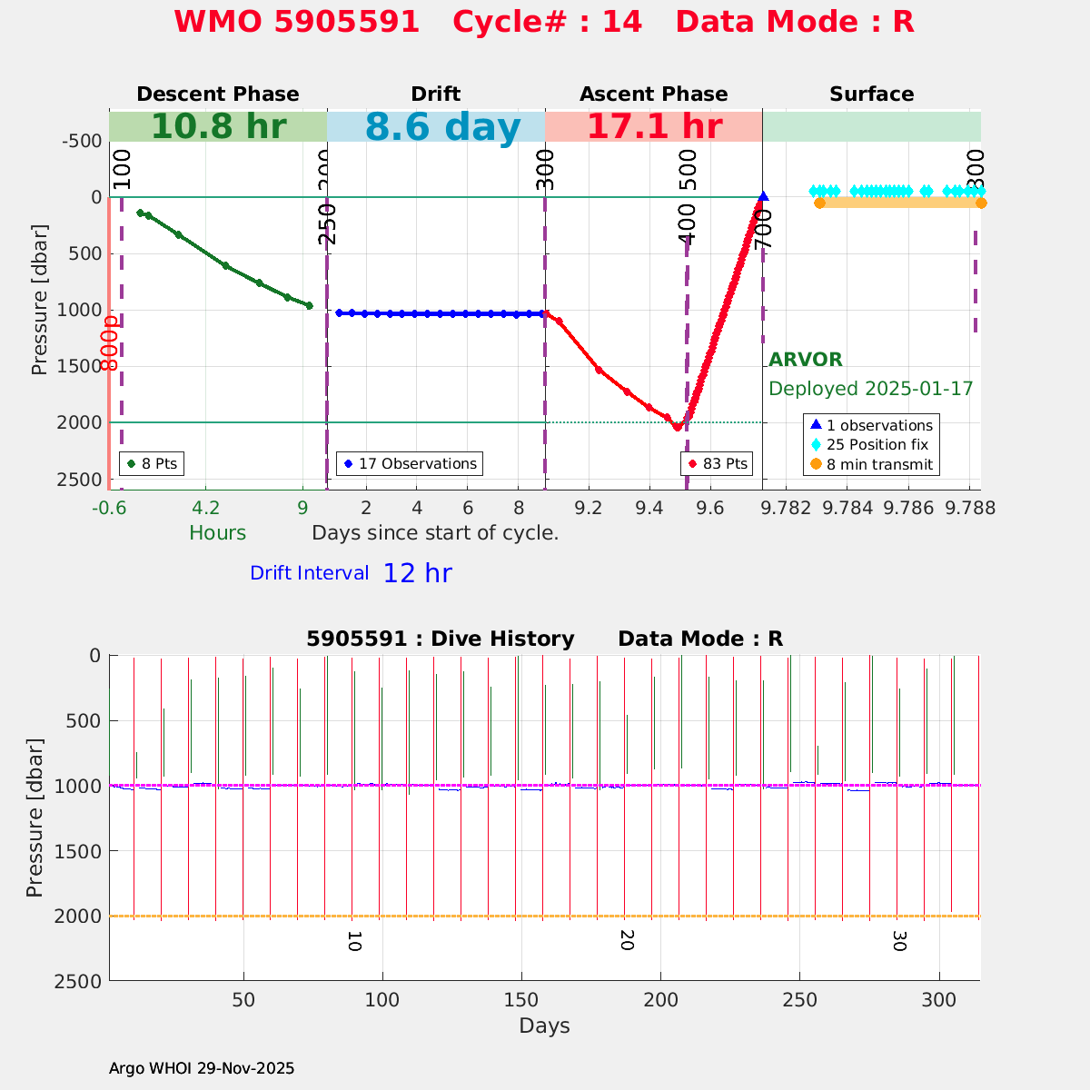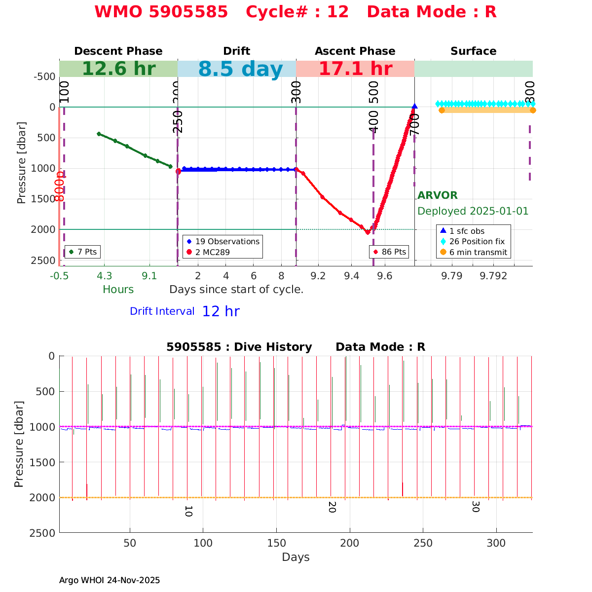 | WMO: #5905614 DAC: csiro PI: Esmee VAN WIJK SOLO_D MRV: #12091 KISTLER: #6146053 SBE61: #6003 Altimeter Comparison (IFREMER) EuroArgo Link | n/a | n/a | ![]() |