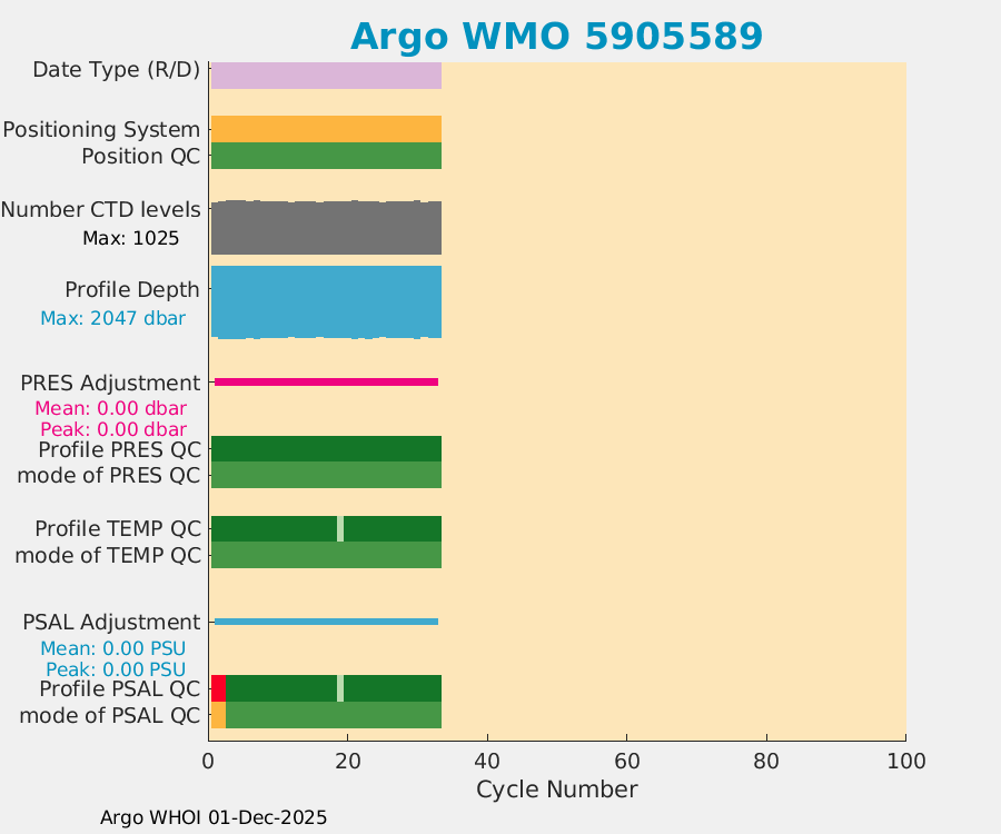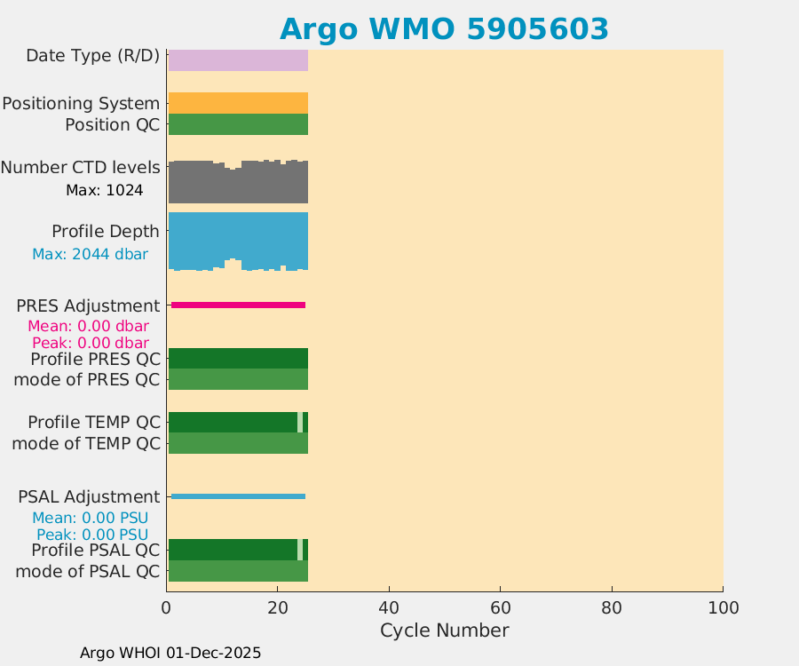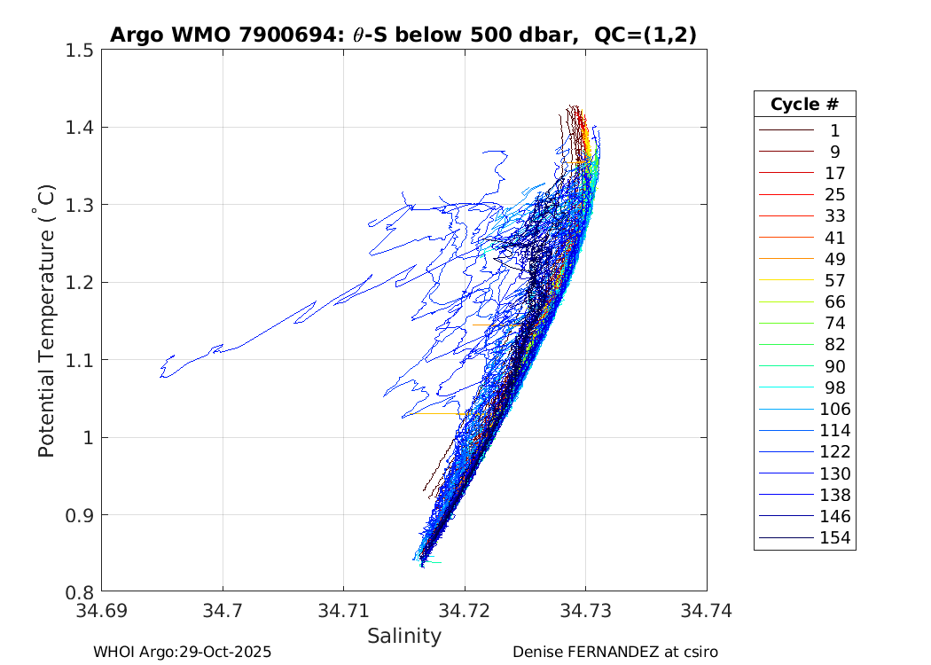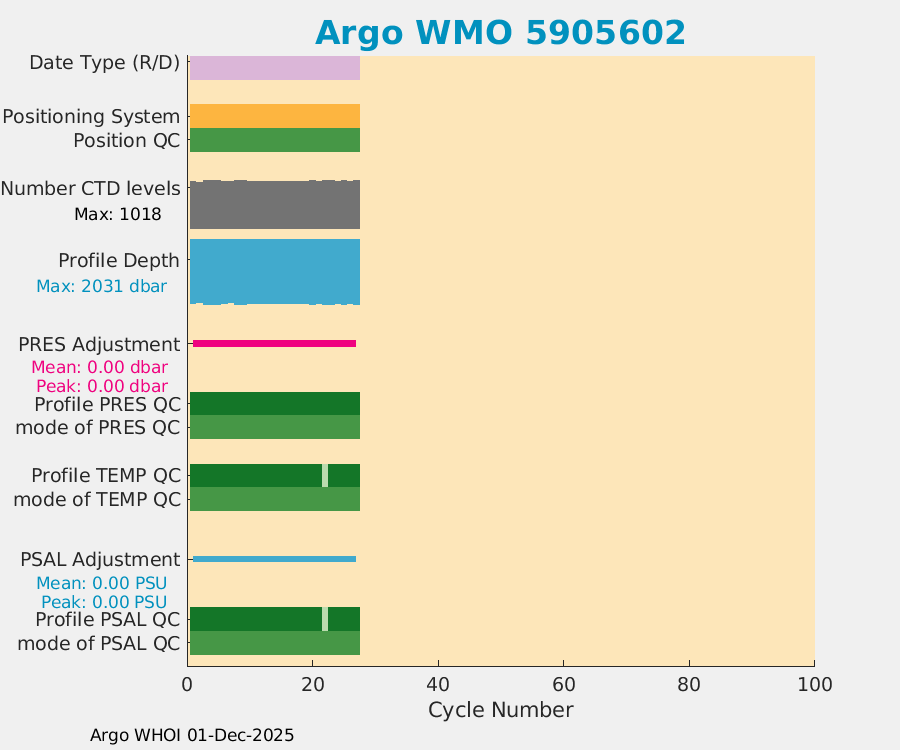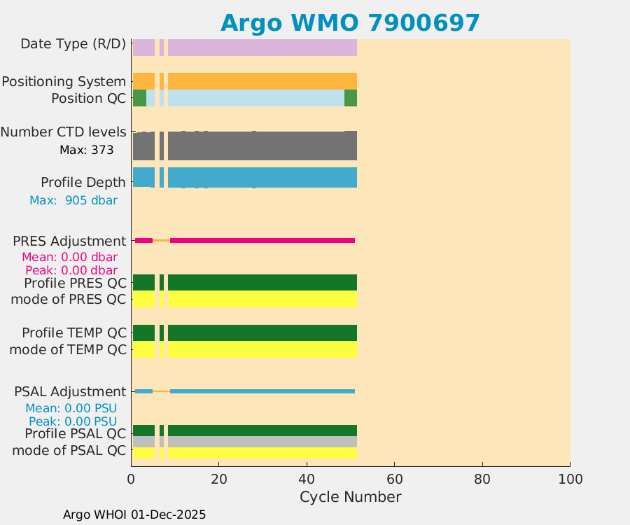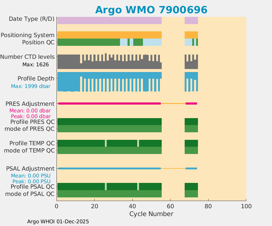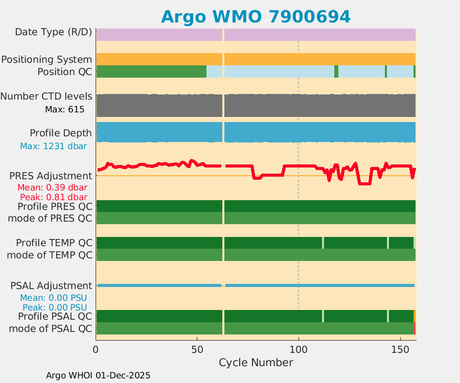 | WMO: #7900694 DAC: csiro PI: Denise FERNANDEZ APEX: #10464 DRUCK: #12400293 SBE41CP: #19650 Altimeter Comparison (IFREMER) EuroArgo Link | ![]() |